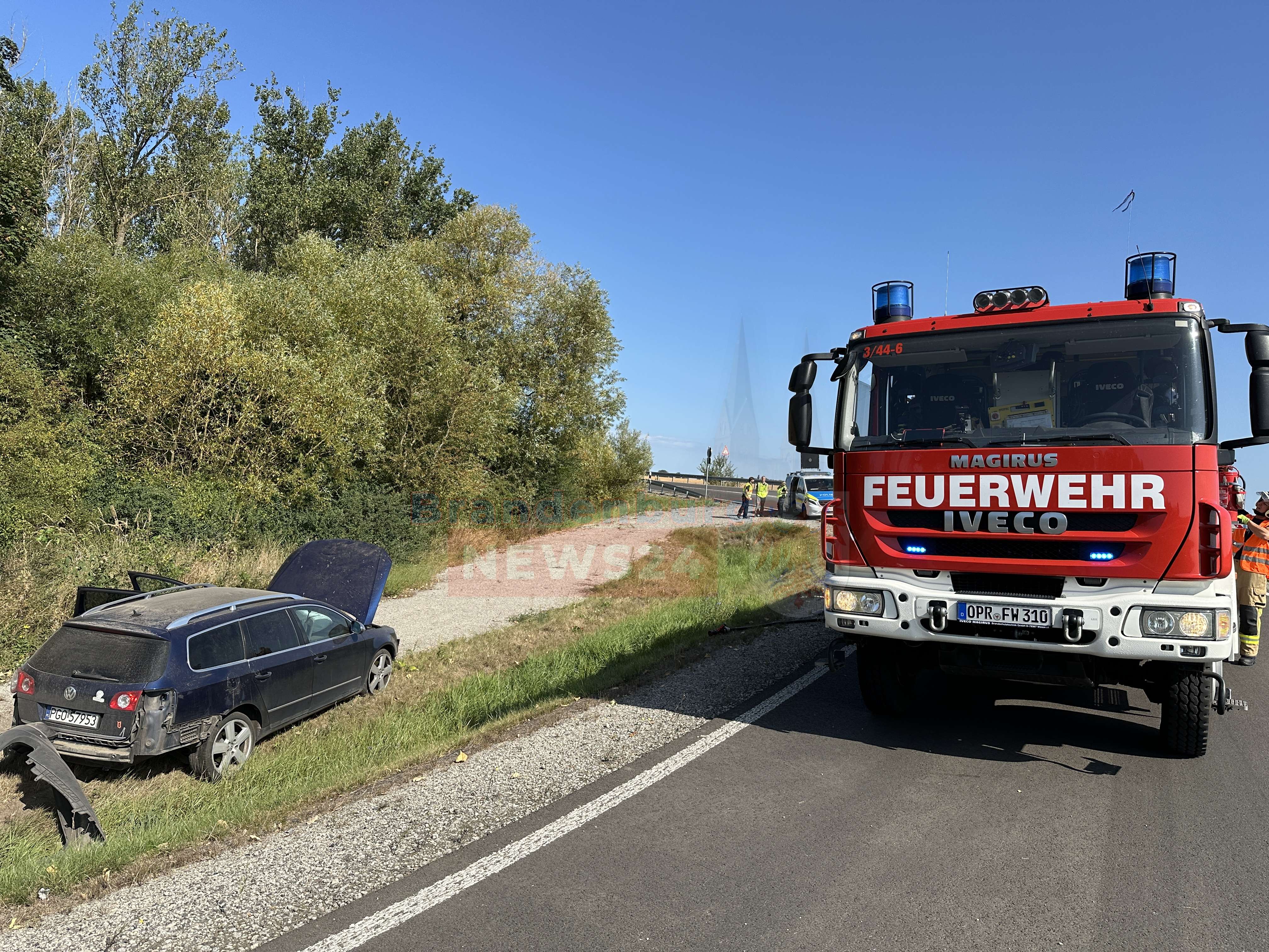 Die Feuerwehr Fehrbellin rückte mit vier Fahrzeugen und 15 Einsatzkräften an, um die Unfallstelle zu sichern. Sie stellten den Brandschutz sicher, beseitigten auslaufende Betriebsstoffe und kümmerten sich bis zum Eintreffen des Rettungsdienstes um den Fahrer.