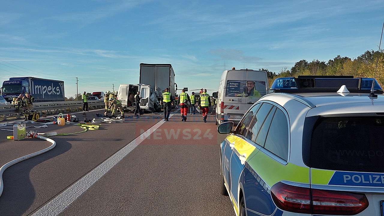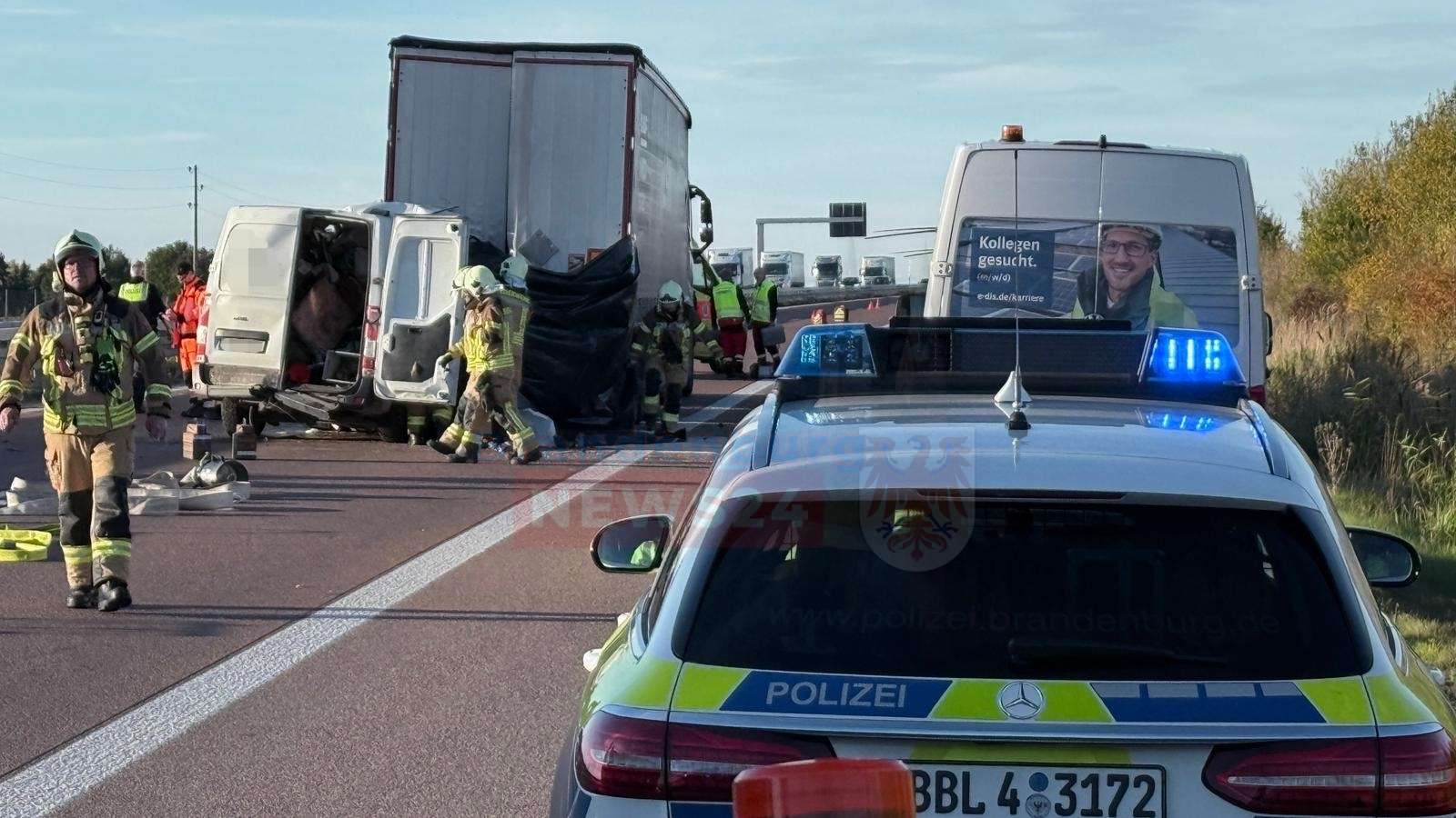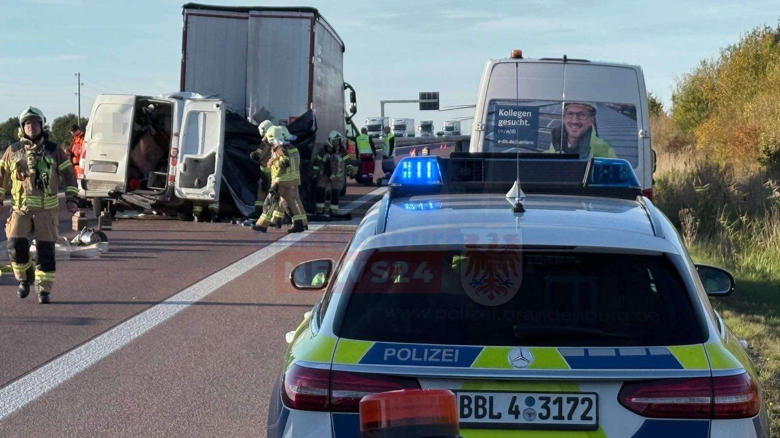 Neuruppin. Zu einem schweren Verkehrsunfall mit tödlichem Ausgang kam es am Montagnachmittag, dem 13. Oktober 2025, auf der Bundesautobahn 24 zwischen den Anschlussstellen Neuruppin-Süd und Neuruppin. Gegen 16:15 Uhr fuhr ein Kleintransporter aus bislang ungeklärter Ursache nahezu ungebremst auf das Stauende und prallte dabei in das Heck eines vorausfahrenden Lkw-Aufliegers.