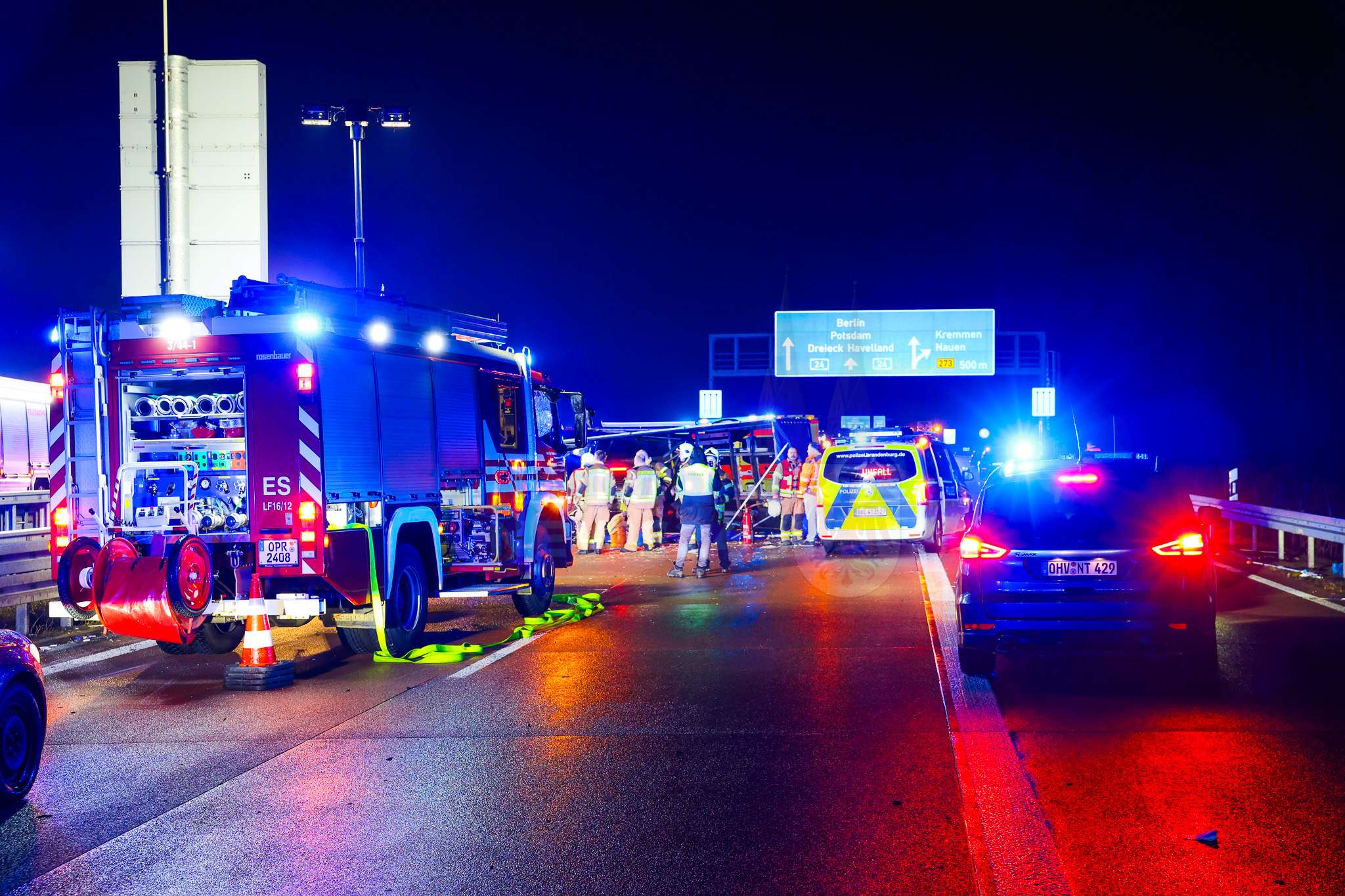 Bei einem schweren Verkehrsunfall auf der Bundesautobahn 24 ist am Samstagabend, dem 21. Februar 2026, ein 52-jähriger Kleintransporter-Fahrer ums Leben gekommen. Zwei weitere Männer im Alter von 20 und 83 Jahren wurden leicht verletzt und in umliegende Krankenhäuser gebracht. Der Unfall ereignete sich gegen 20.18 Uhr in Fahrtrichtung Berlin, kurz vor der Abfahrt Kremmen auf Höhe des Kilometers 233.