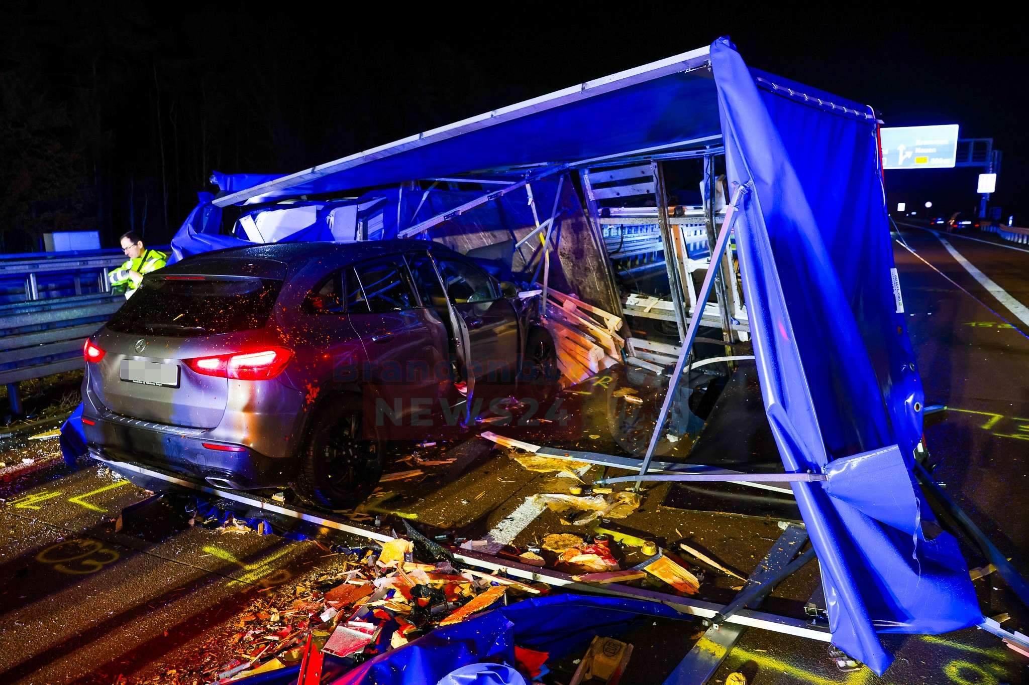 Für die Dauer der Rettungs-, Bergungs- und Ermittlungsarbeiten wurde die Richtungsfahrbahn Berlin voll gesperrt. Zeitweise war auch die Gegenrichtung betroffen, da Einsatzfahrzeuge auf der Fahrbahn standen. Feuerwehrkräfte leuchteten die Unfallstelle aus, während die Polizei den Verkehr absicherte.