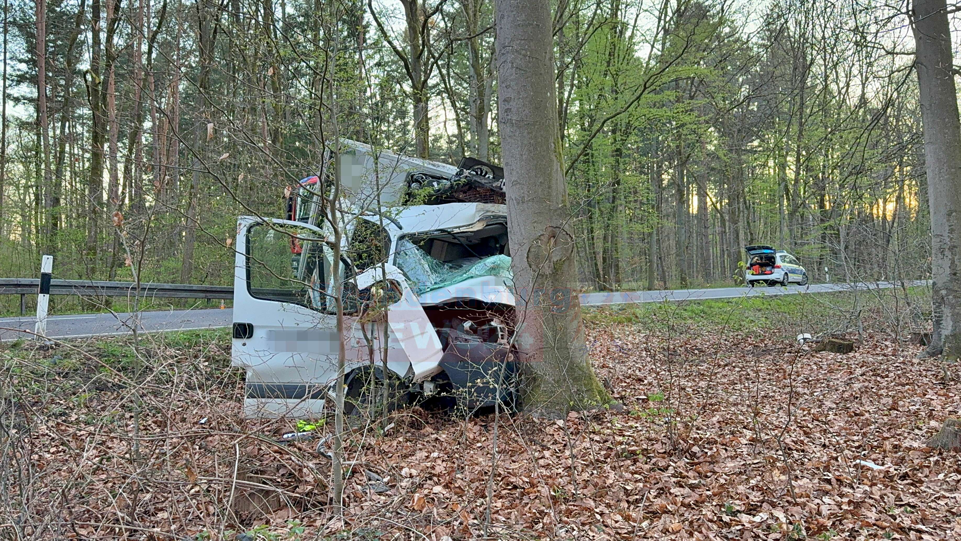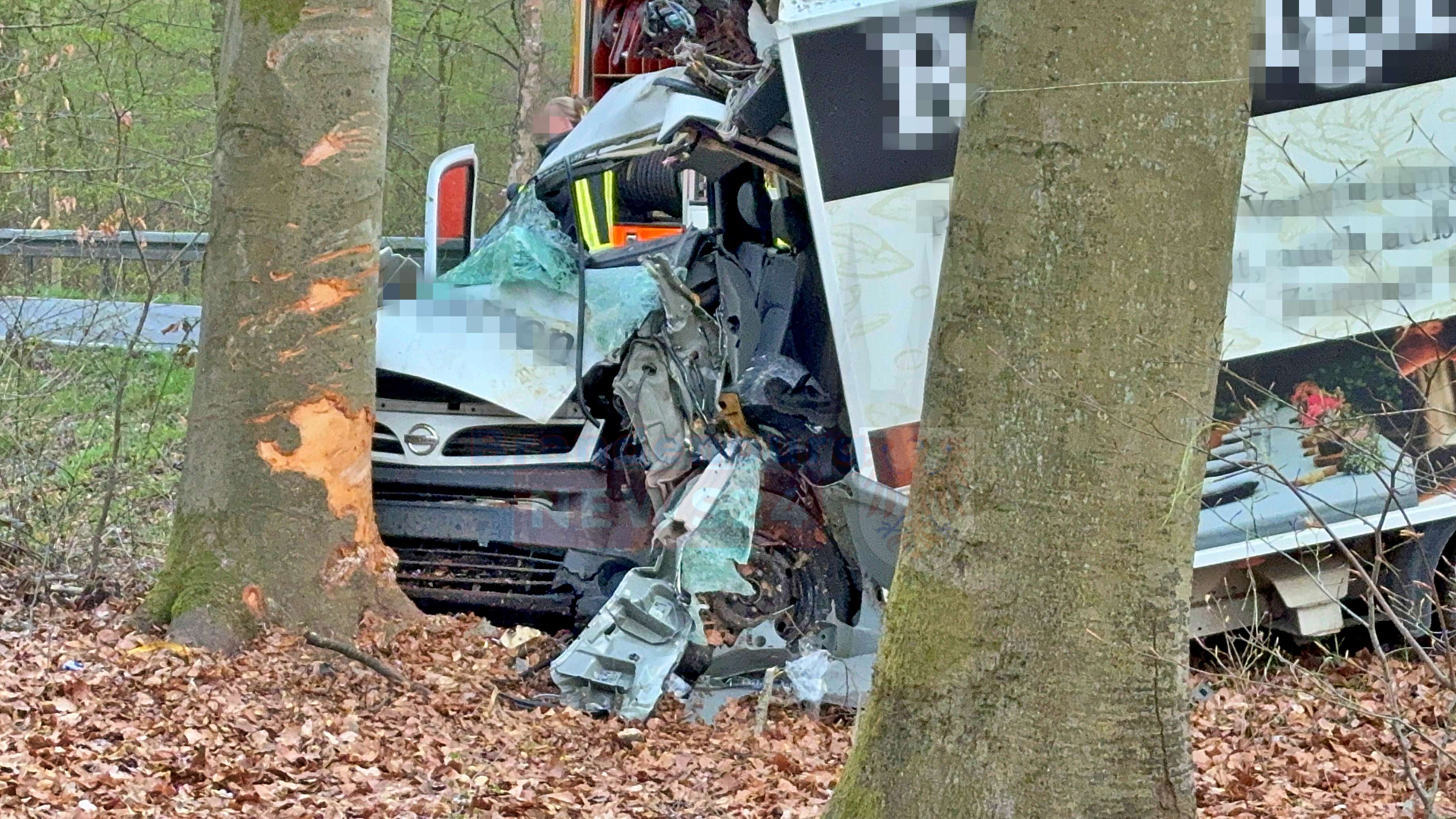 Die Wucht des Aufpralls zerstörte die Fahrerkabine des Transporters fast vollständig, wodurch der Fahrer in dem Wrack schwer eingeklemmt wurde. Die Rettungsleitstelle löste umgehend einen Großeinsatz aus. Um keine Zeit zu verlieren, landete ein Rettungshubschrauber in dem Waldgebiet, um einen Notarzt zur Einsatzstelle zu bringen. Trotz der schnellen Befreiung aus dem Fahrzeug und sofort eingeleiteter Reanimationsmaßnahmen auf der Fahrbahn kam für den Mann jede Hilfe zu spät. Er erlag noch am Unfallort seinen schweren Verletzungen.