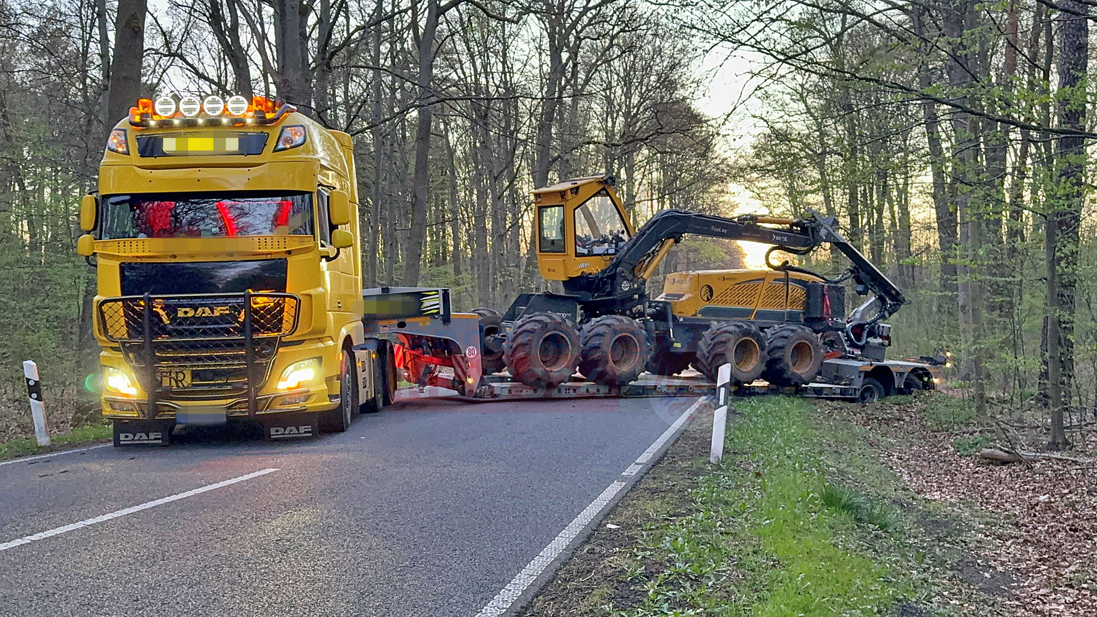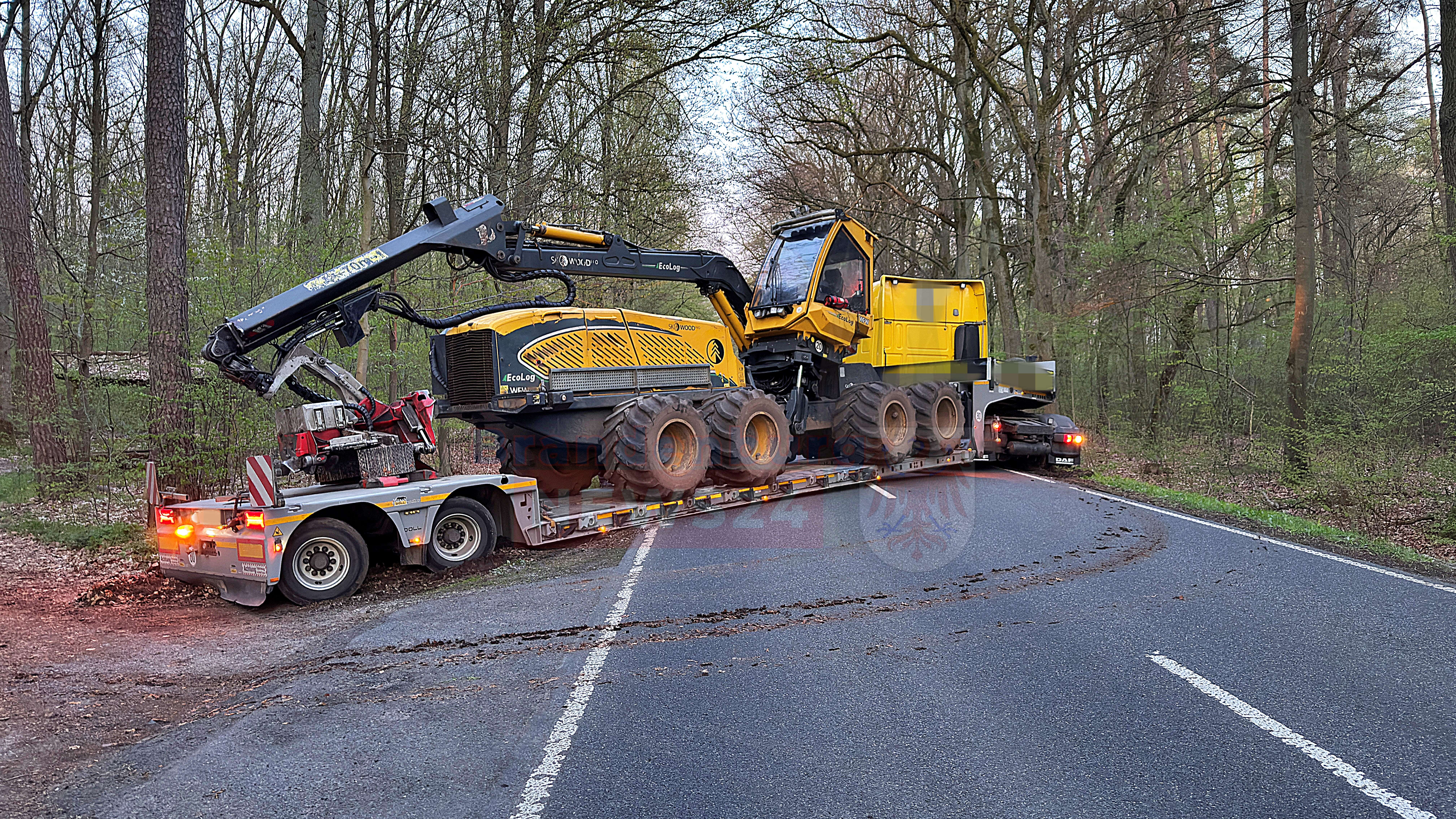 Mitten in dem ohnehin kräftezehrenden Rettungseinsatz kam es zu einer weiteren folgenschweren Verkehrsbehinderung. Ein herannahender Lkw, der mit einer schweren Forstmaschine beladen war, fuhr auf die Einsatzstelle zu. Als der Fahrer die Absperrungen bemerkte, versuchte er, sein langes Gespann an einer nahegelegenen Abzweigung zu wenden. Dabei geriet der Schwerlasttransport in den aufgeweichten Grünstreifen und fuhr sich unglücklich fest. Die Fahrbahn wurde dadurch kurz hinter der eigentlichen Unfallstelle komplett blockiert.