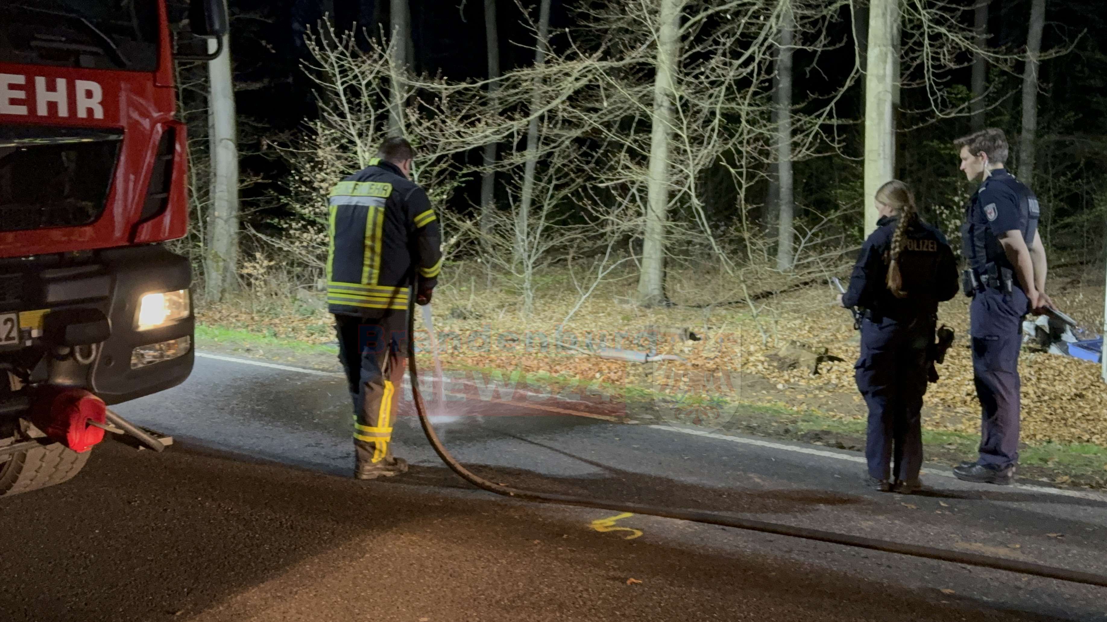 Um den genauen Unfallhergang zu rekonstruieren, forderte die Polizei den Kriminaldauerdienst sowie einen Sachverständigen der DEKRA an. Für die aufwendige Unfallaufnahme leuchtete die Feuerwehr das Waldstück und die Fahrbahn großflächig aus. Die Ermittler vermaßen die Unfallstelle bis tief in die Nacht akribisch und sicherten Spuren am Wrack sowie auf dem Asphalt. Im weiteren Verlauf wurde ein Bestattungsunternehmen zur Unfallstelle gerufen.