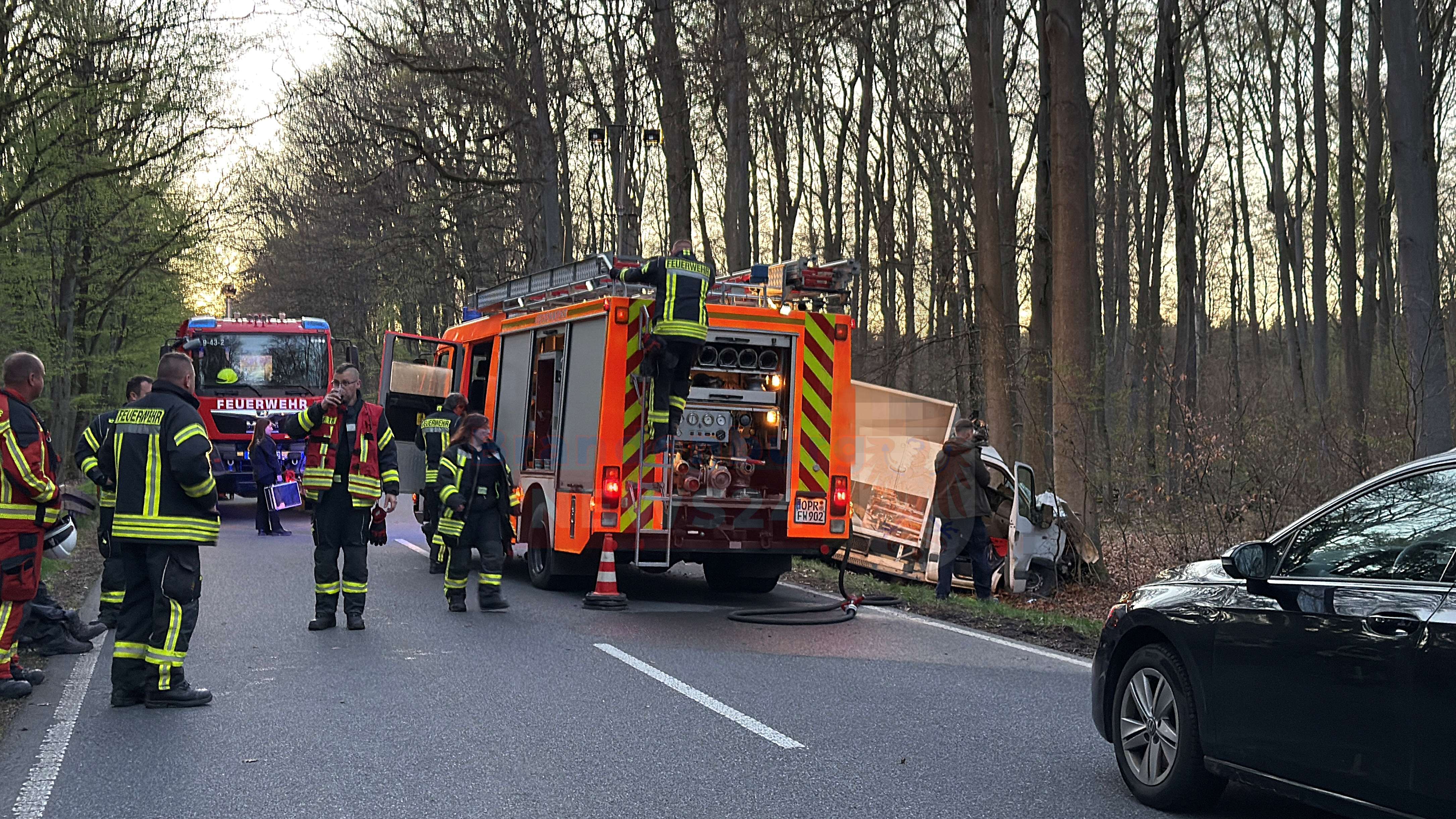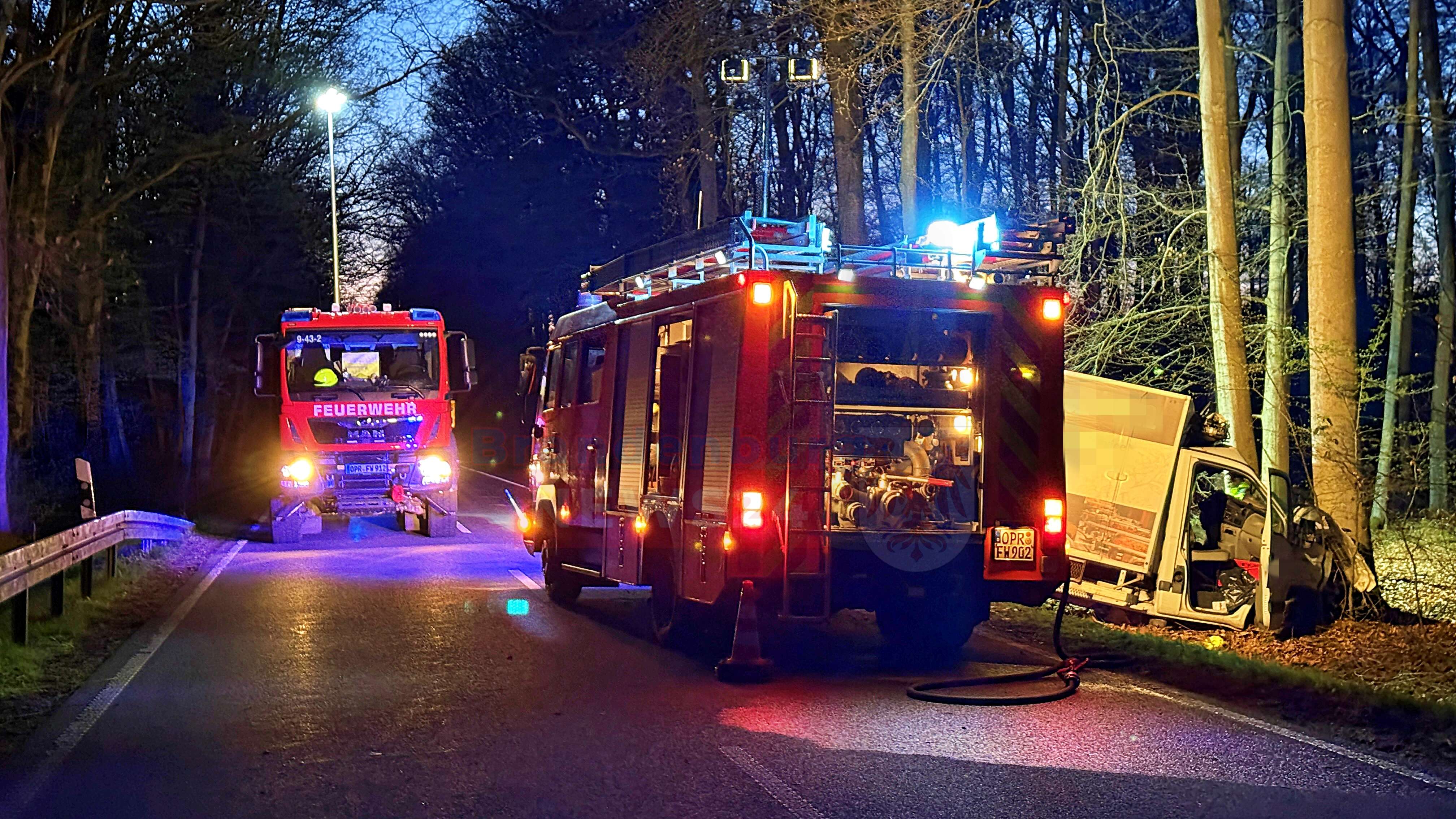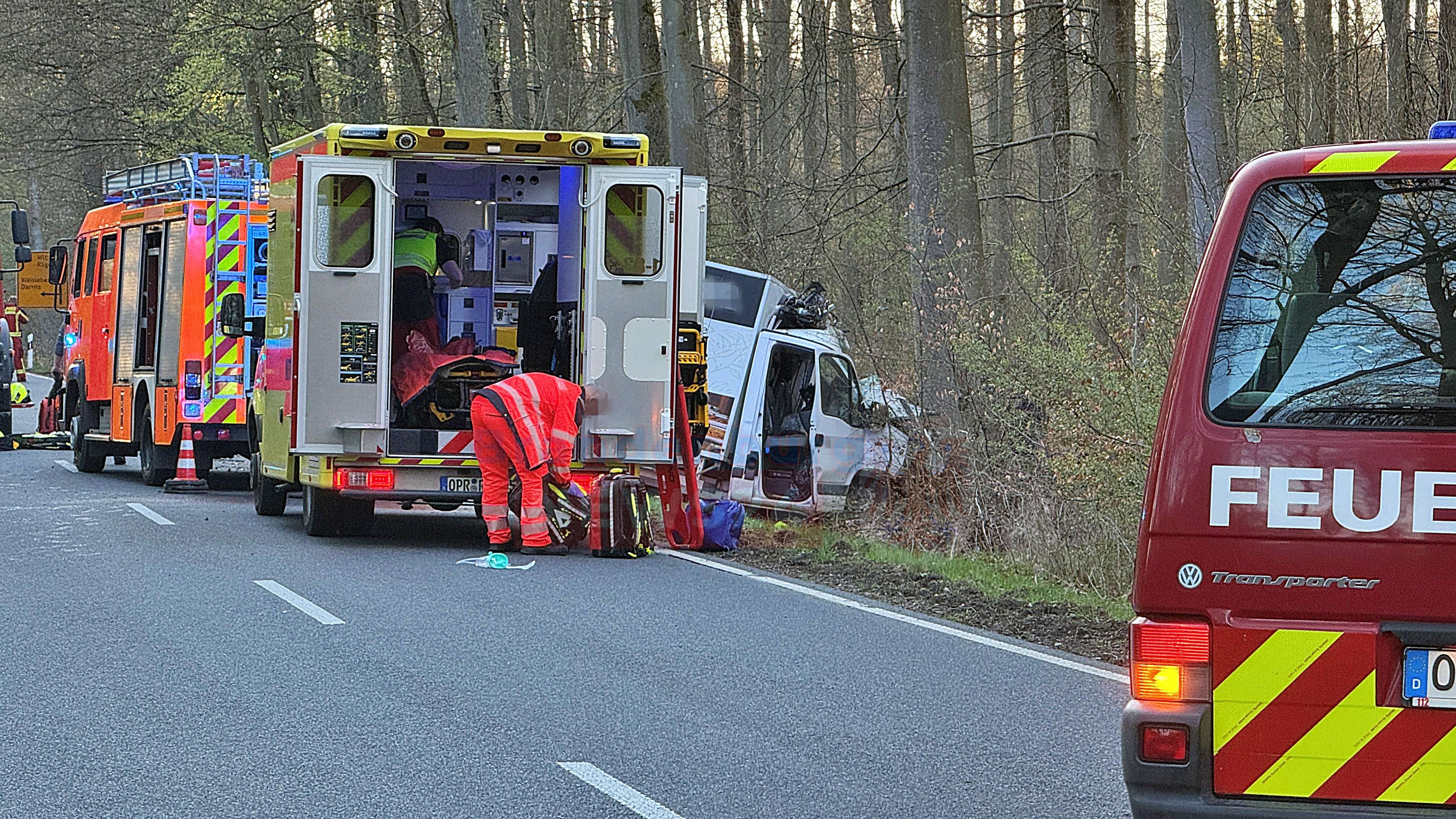 Storbeck. Bei einem schweren Verkehrsunfall auf der Landstraße 18 zwischen Storbeck und Rägelin ist am Mittwochabend ein Autofahrer ums Leben gekommen. Der Kleintransporter des Mannes war gegen einen Baum geprallt. Ein Großaufgebot an Rettungskräften kämpfte vergeblich um das Leben des Fahrers. Ein festgefahrener Schwerlasttransport erschwerte die Situation am Rande des Einsatzes zusätzlich.
