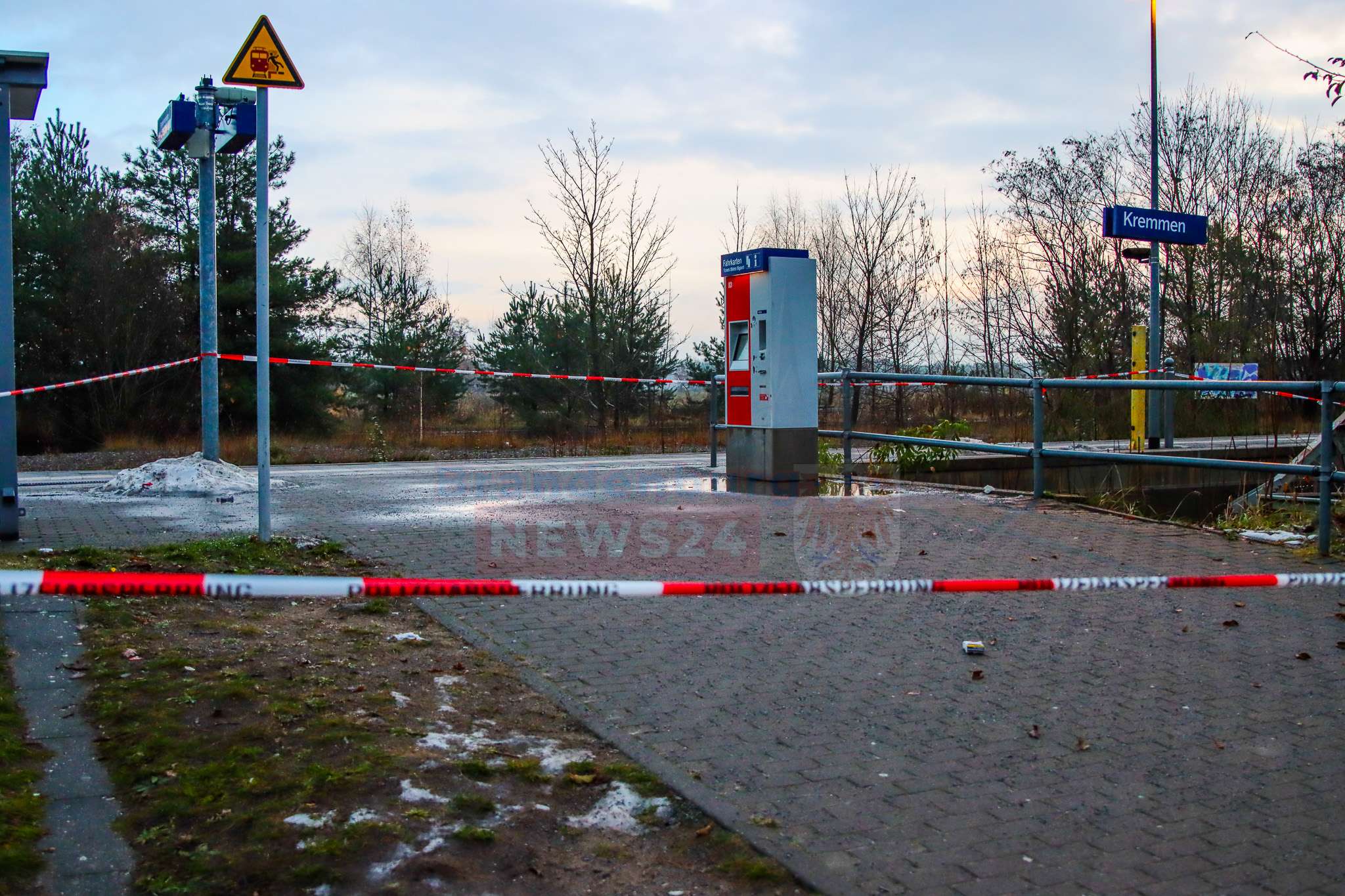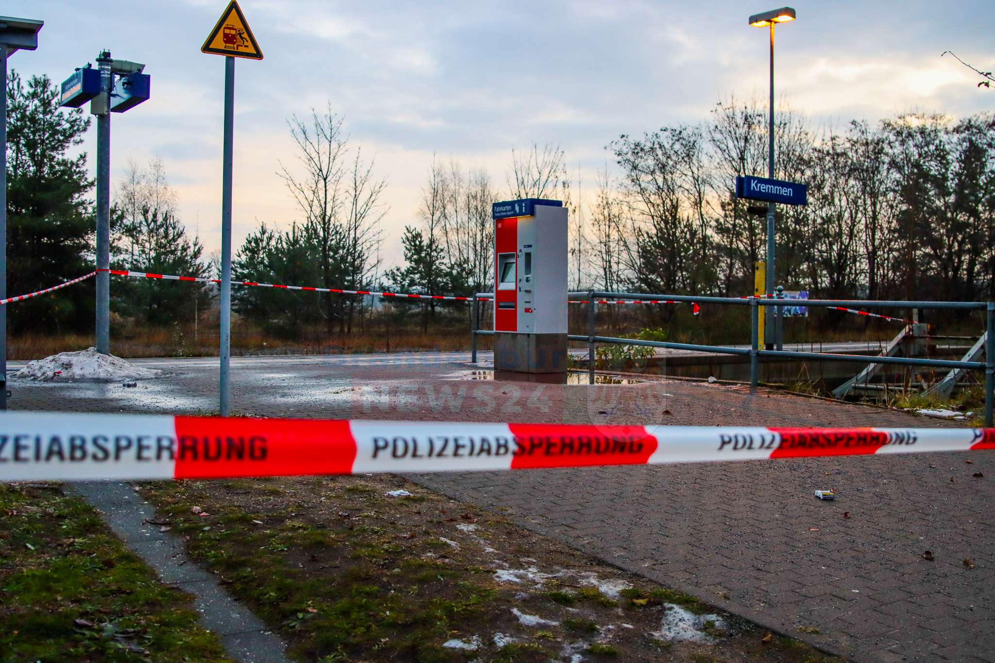 Kremmen (Oberhavel). In der Nacht zum 10. Dezember gegen 3 Uhr haben noch bislang unbekannte Täter versucht am Bahnhof Kremmen ein Fahrkartenautomaten zu sprengen aber schlug jedoch fehl.