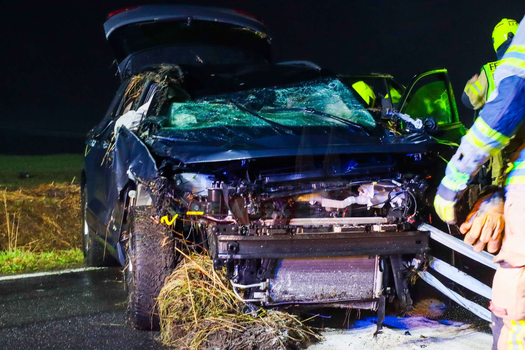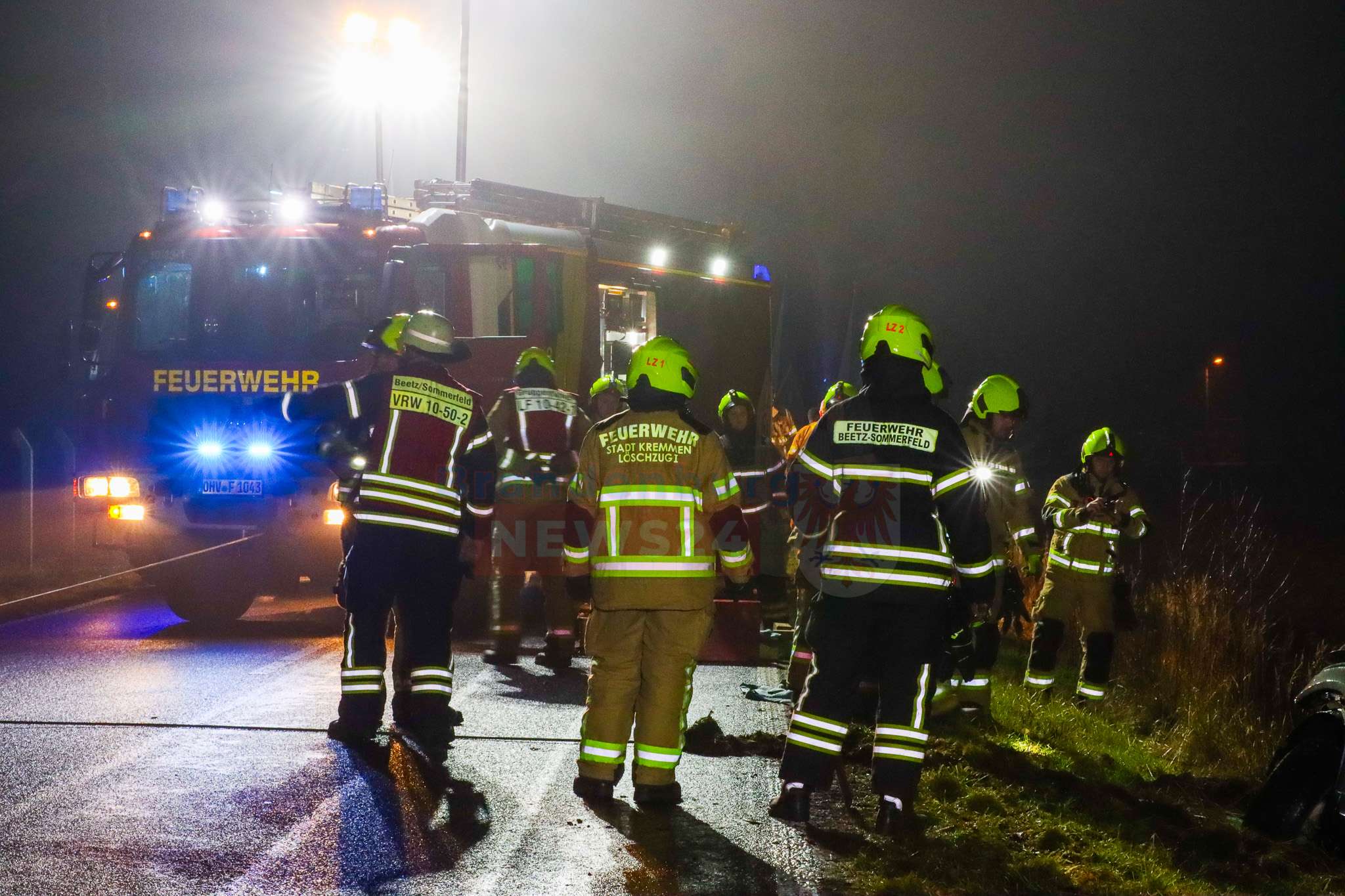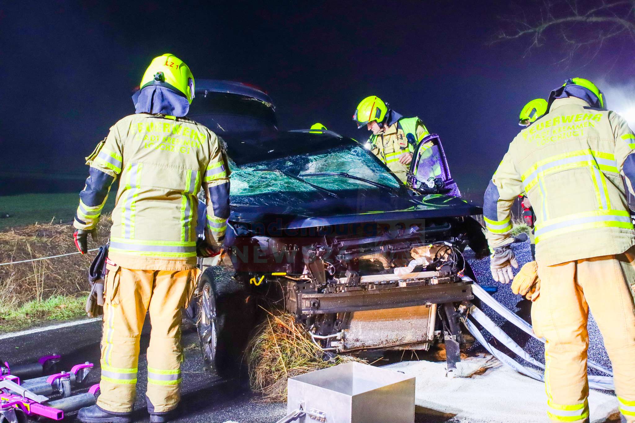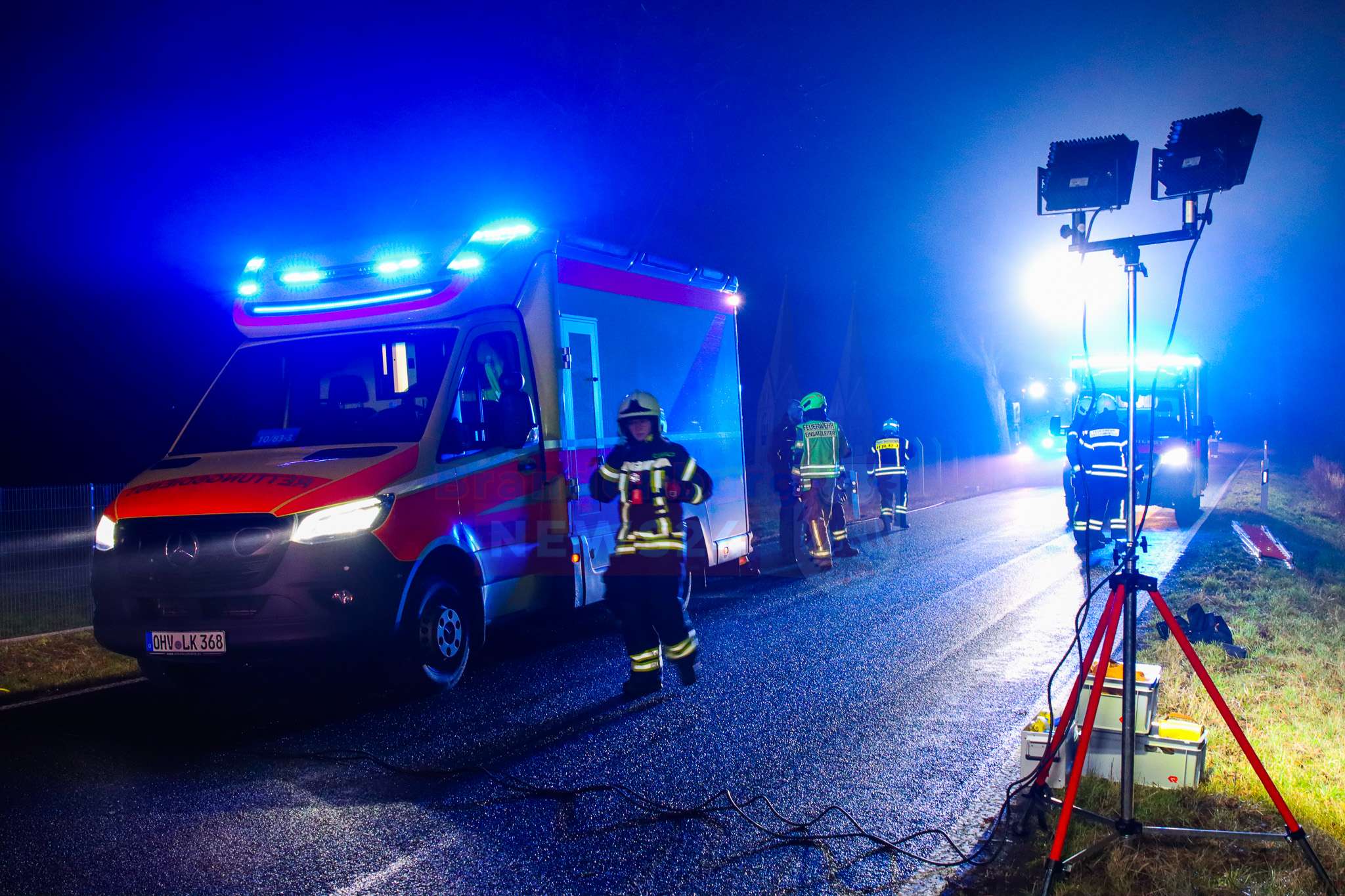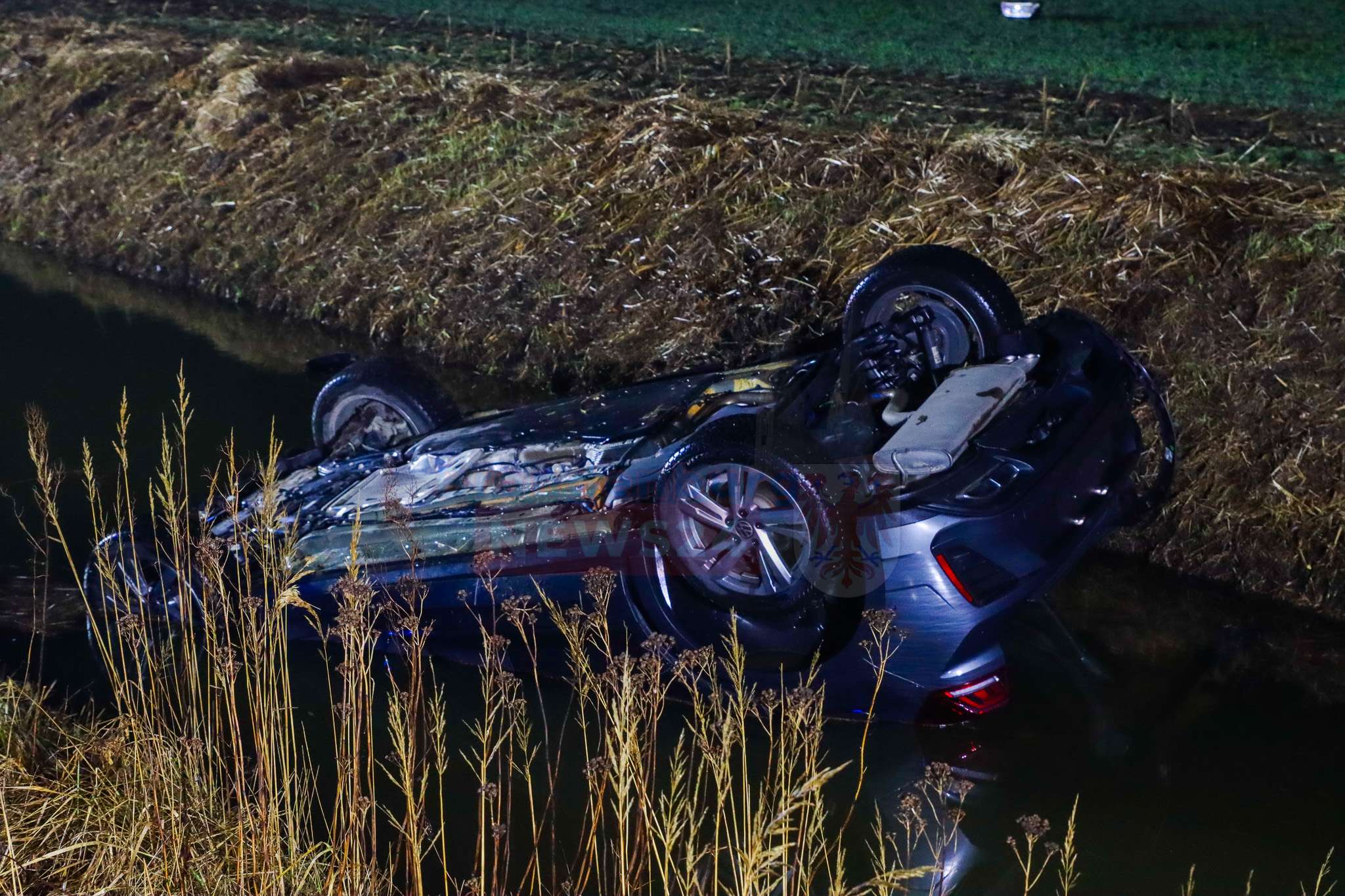 Als der PKW kopfüber in einem überfluteten Straßengraben zum liegen kam, befreiten sich die drei Insassen des Fahrzeugs selbständig, bevor der Fahrgastraum komplett mit Wasser gefüllt war. Anschließend informierten sie die Rettungskräfte der Polizei und Rettungsdienst.