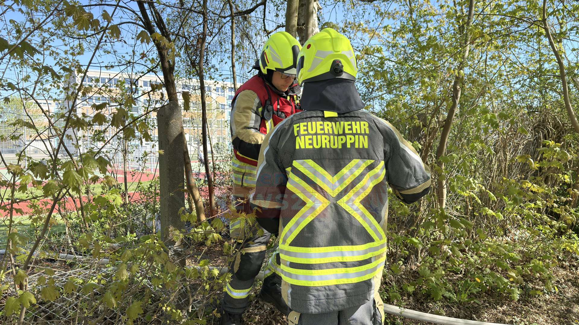 Neuruppin – Am Sonntagnachmittag wurde die Freiwillige Feuerwehr Neuruppin zu einem Einsatz an der Fontane-Schule in der Hermann-Matern-Straße gerufen. Ein Flächenbrand im Unterholz am Rande des Sportplatzes konnte zügig gelöscht werden. Während die Polizei wegen möglicher Brandstiftung ermittelt, sorgten ungeduldige Autofahrer für Kopfschütteln bei den Einsatzkräften.