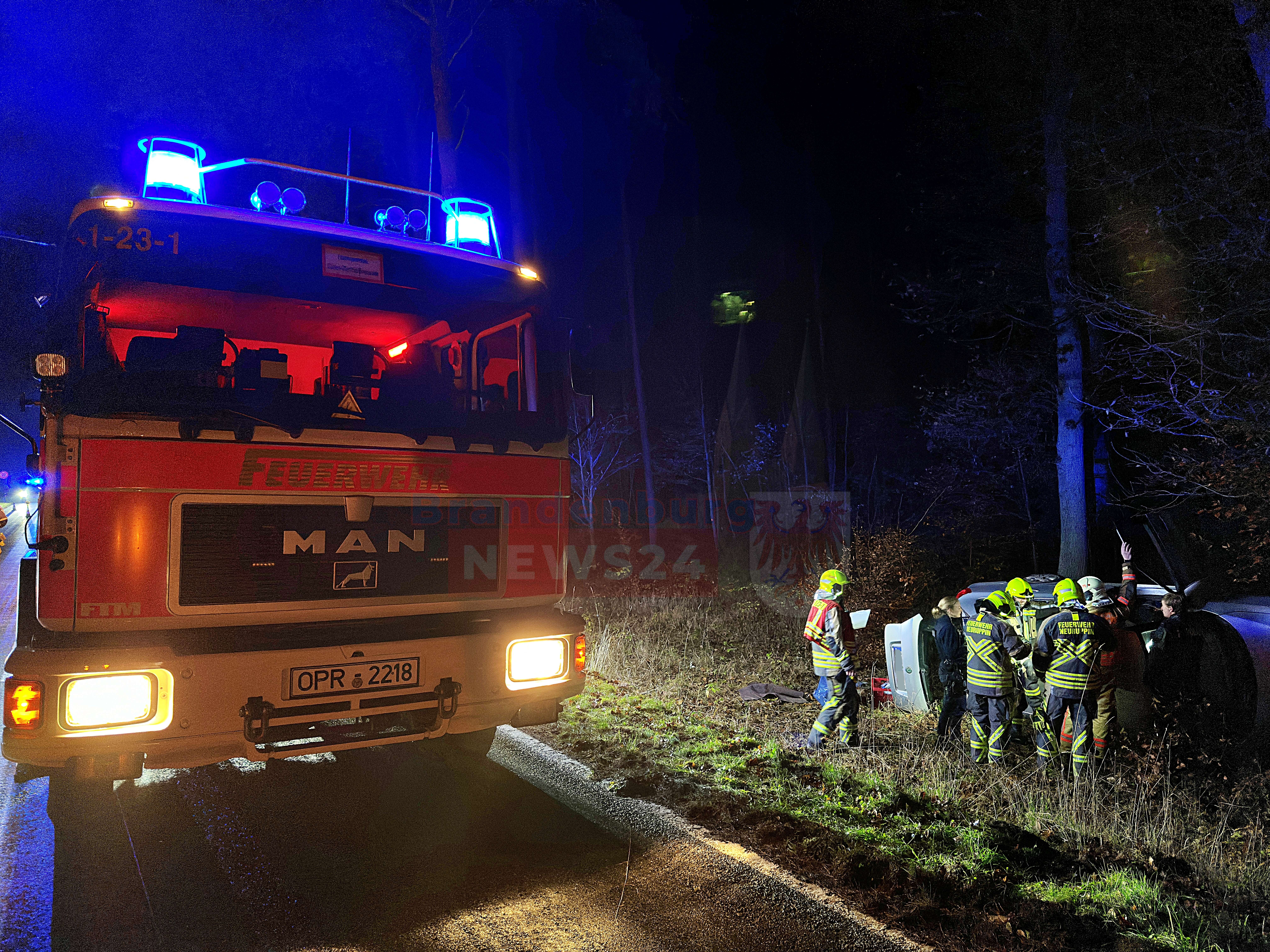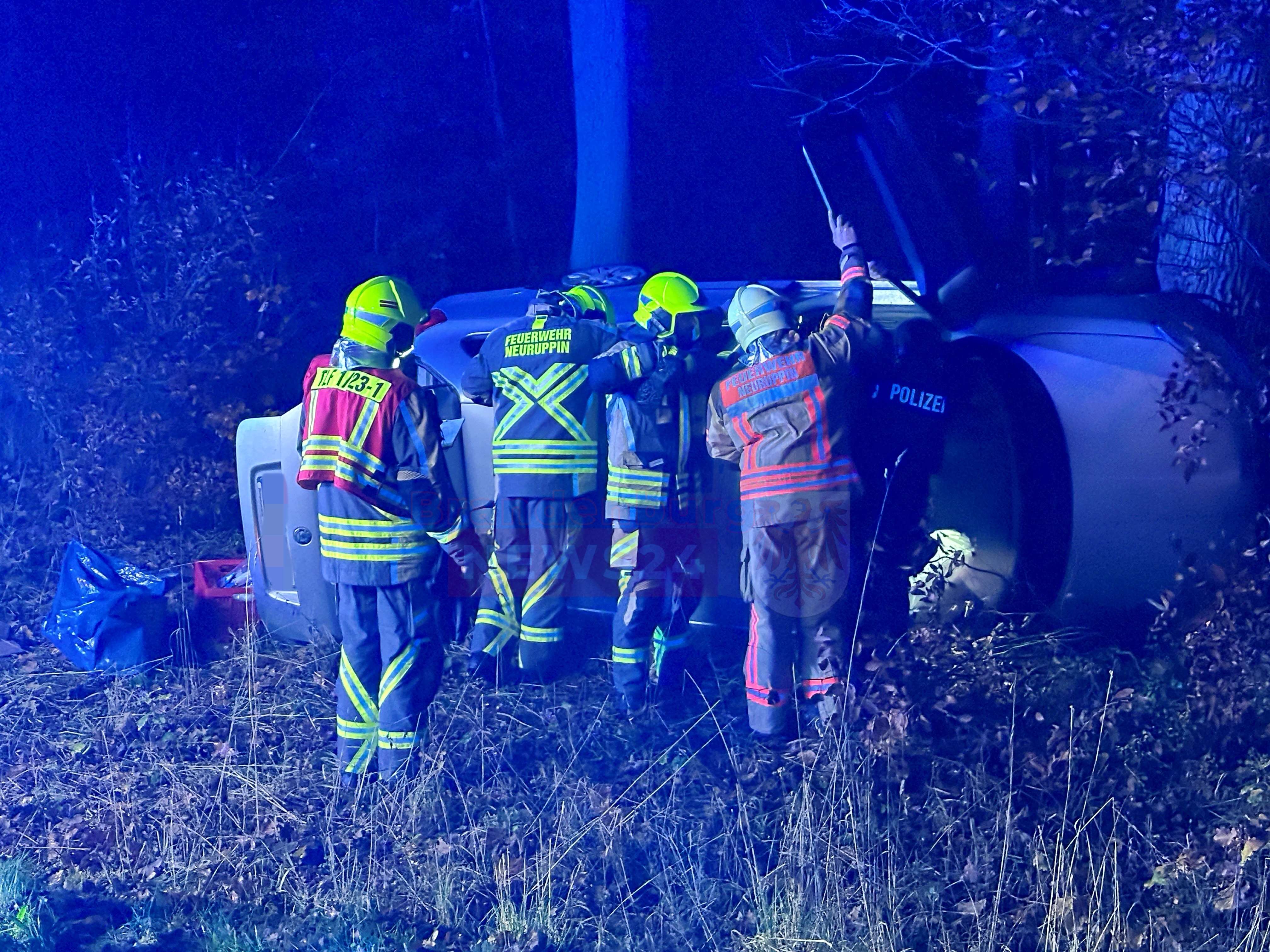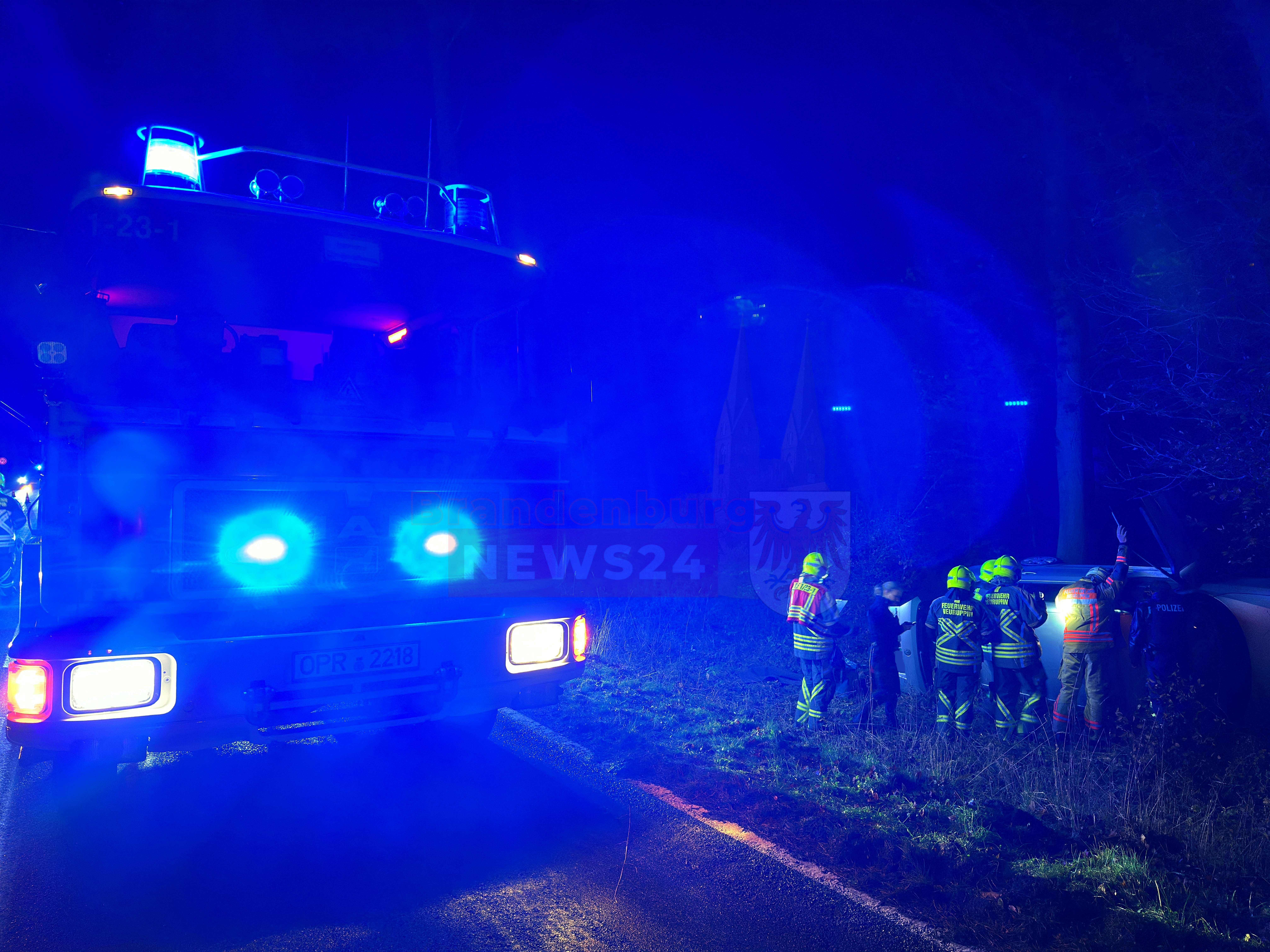 Gühlen-Glienicke (Ostprignitz-Ruppin). Am späten Samstagnachmittag ereignete sich auf der L16 zwischen Gühlen-Glienicke und Wallitz ein schwerer Verkehrsunfall, der die Feuerwehr Neuruppin, Löschgruppe Nord, auf den Plan rief. Gegen 17:20 Uhr kam der Fahrer eines Škoda aus bisher ungeklärten Gründen von der Fahrbahn ab, schlitterte an massiven Straßenbäumen entlang und kam schließlich seitlich an einem weiteren Baum zum Liegen.