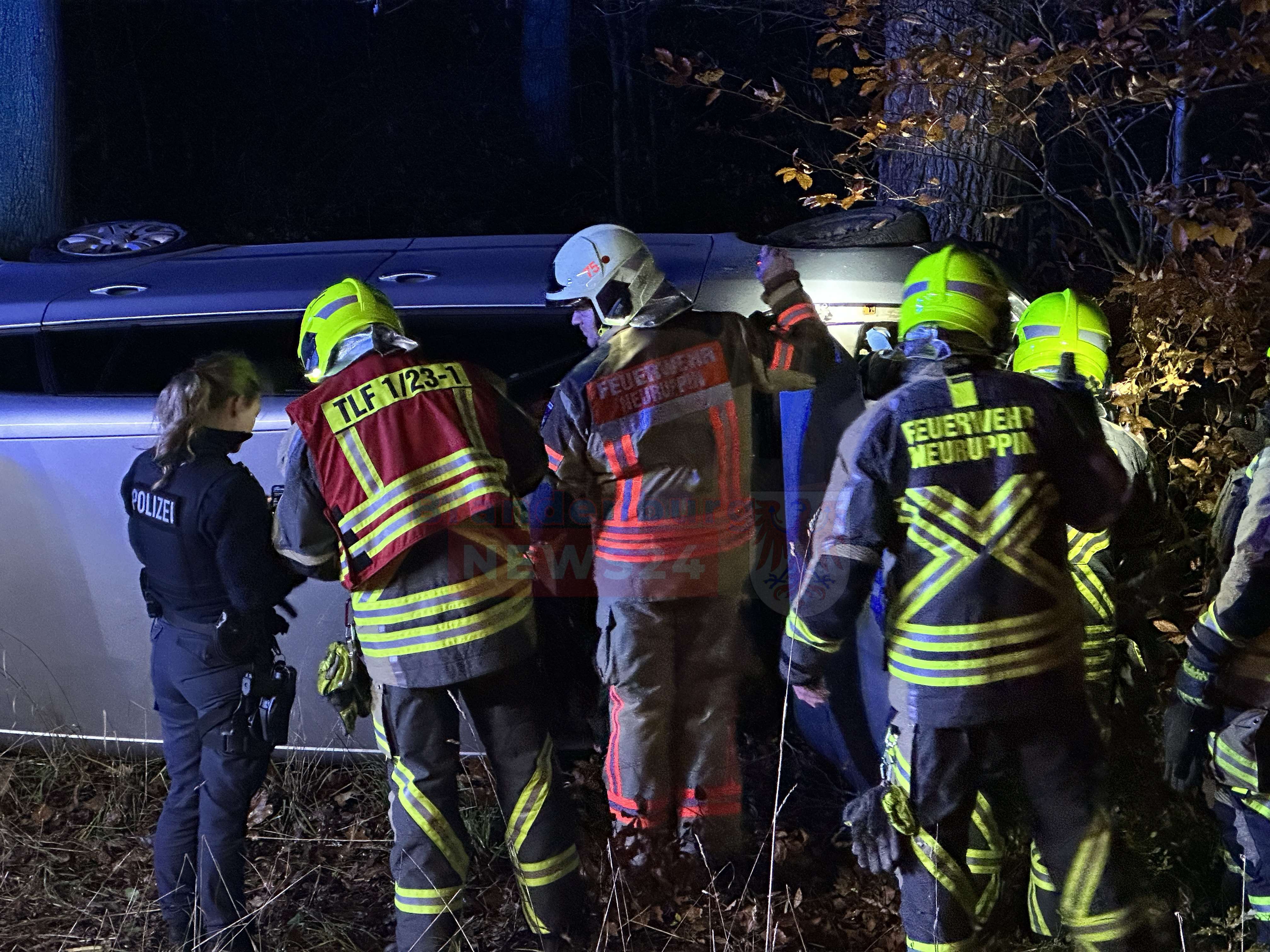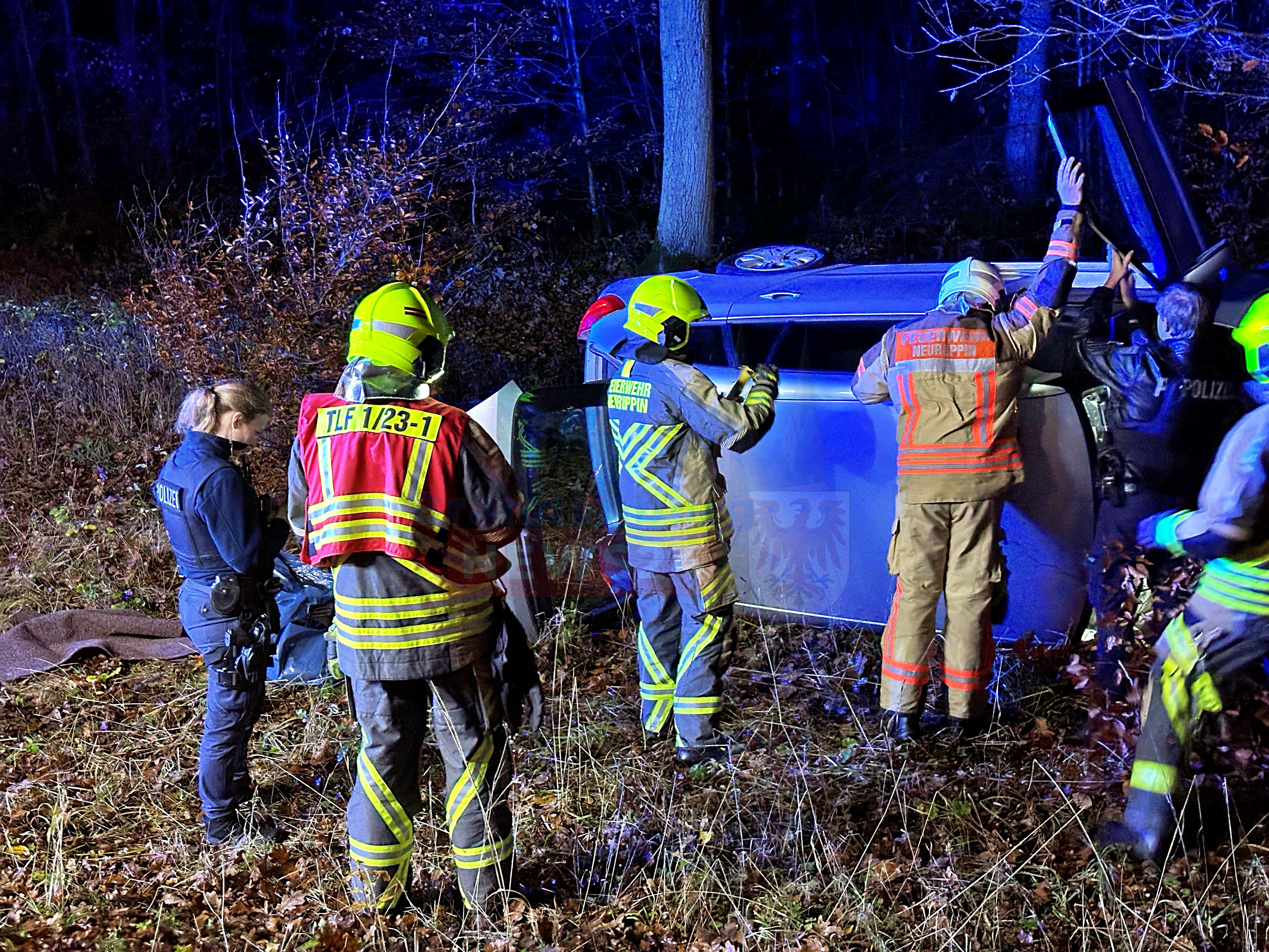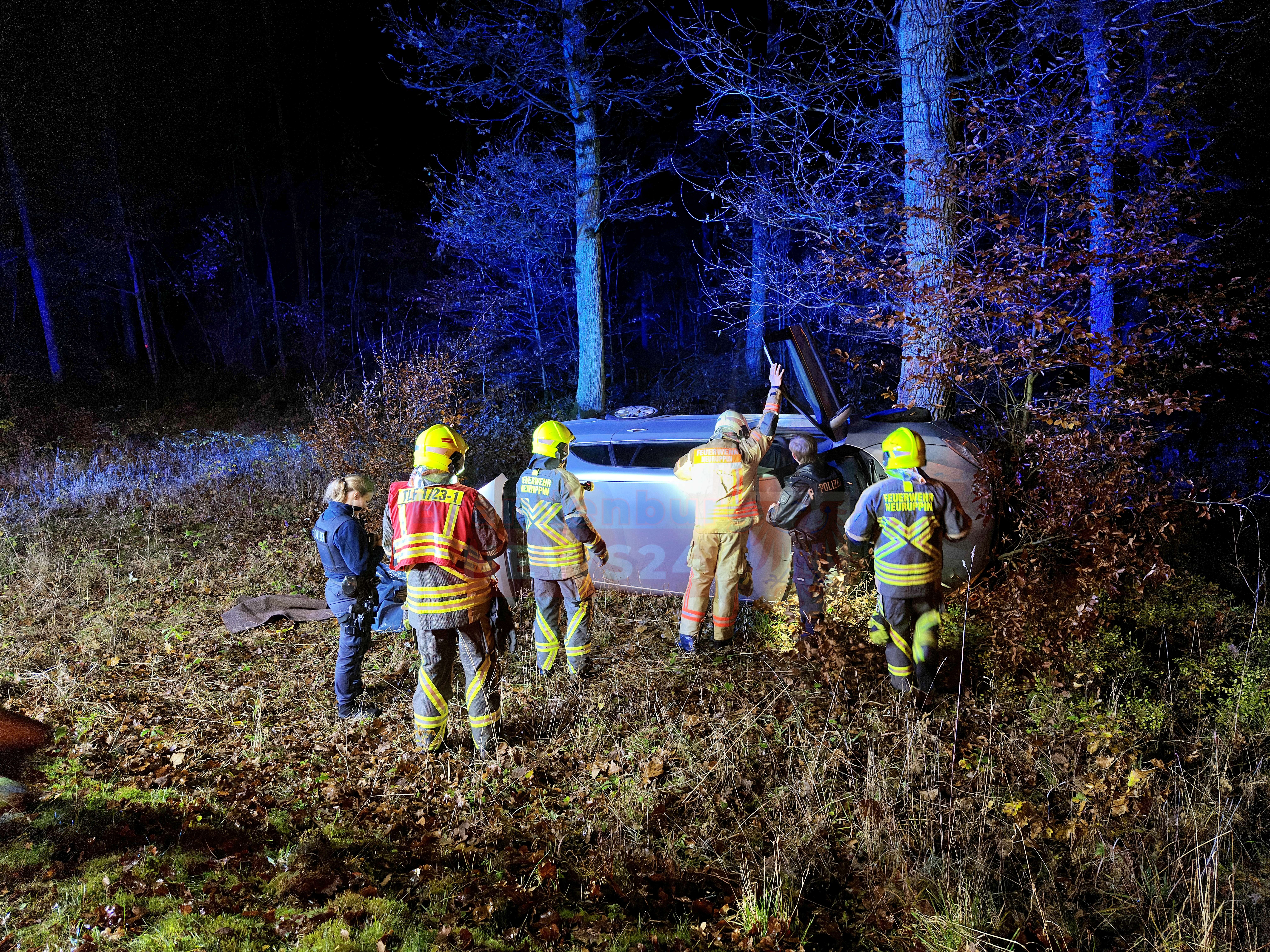 Gühlen-Glienicke (Ostprignitz-Ruppin). Am späten Samstagnachmittag ereignete sich auf der L16 zwischen Gühlen-Glienicke und Wallitz ein schwerer Verkehrsunfall, der die Feuerwehr Neuruppin, Löschgruppe Nord, auf den Plan rief. Gegen 17:20 Uhr kam der Fahrer eines Škoda aus bisher ungeklärten Gründen von der Fahrbahn ab, schlitterte an massiven Straßenbäumen entlang und kam schließlich seitlich an einem weiteren Baum zum Liegen.