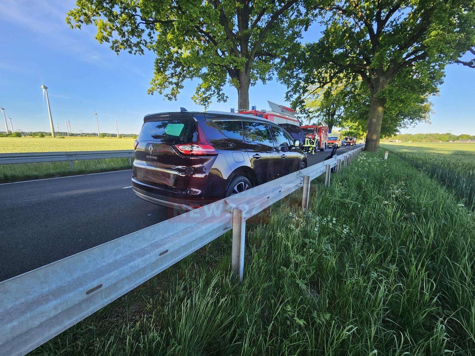 Die Feuerwehr aus Neustadt und Zernitz musste die Fahrertür Mithilfe von hydraulischem Rettungsgerät entfernen da sie in ihrem PKW eingeschlossen war. Durch den Zusammenstoß der beiden Fahrzeuge und herumfliegende Trümmerteile wurde eine 34-jährige mit ihrem Seat die hinter der Renaultfahrerin fuhr in Mitleidenschaftt gezogen.