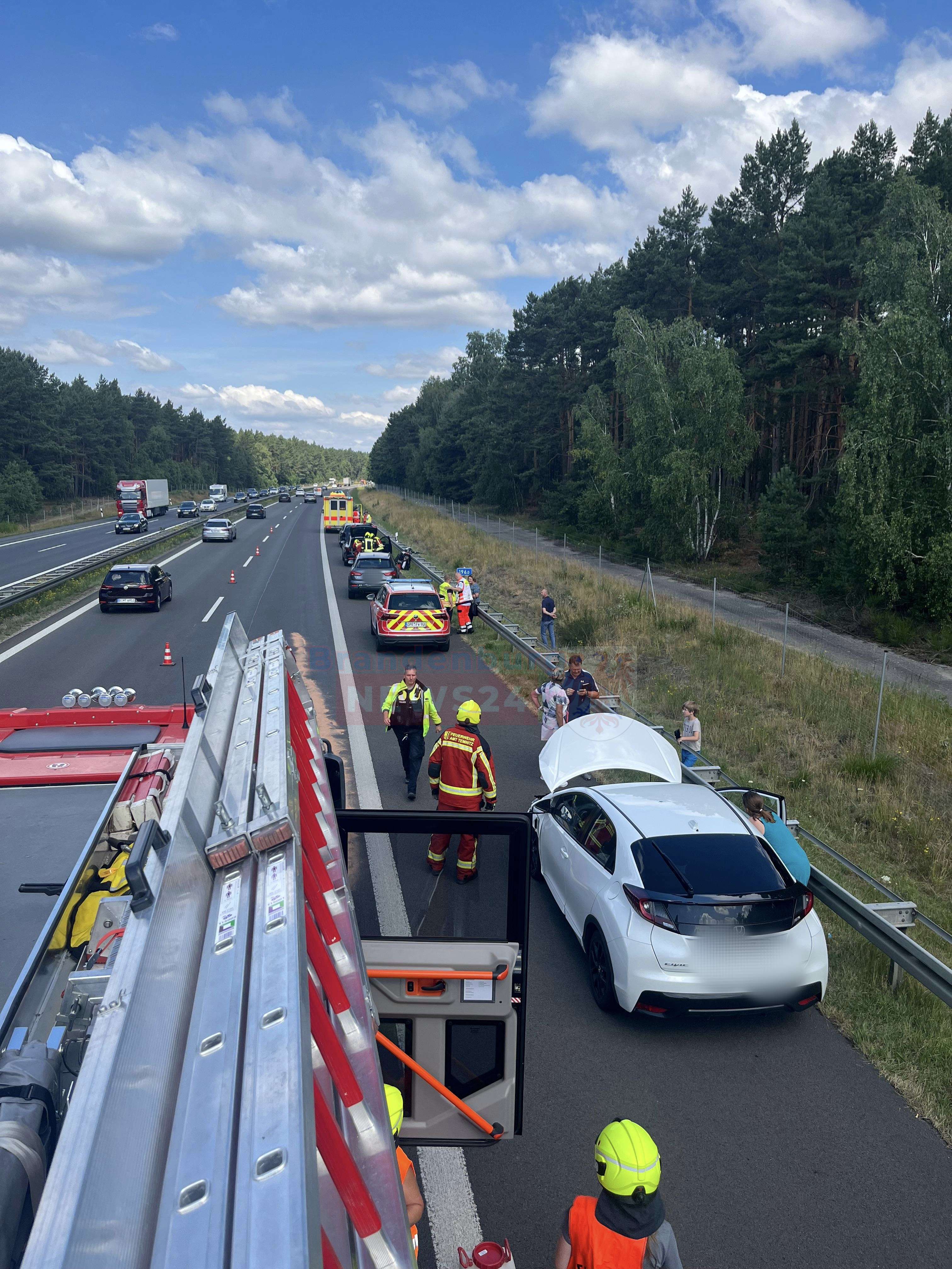 Am Freitag kam es gegen Mittag auf der A24 zwischen der Raststaette Walsleben und Herzsprung in Richtung Hamburg zu einem Unfall mit mehreren Fahrzeugen. Als die ersten Kräfte eingetroffen sind konnten 4 betroffene Fahrzeuge festgestellt werden, 2 der Fahrzeuge waren nicht mehr fahrbereit. Aufgrund der ersten Alarmierung wurden ebenfalls mehrere Rettungswagen zur Unfallstelle angefordert. Nach der Sichtung durch den Rettungsdienst konnte festgestellt werden das niemand verletzt wurde. Die Feuerwehr sicherte die Unfallstelle gegen den fließenden Verkehr, dieser wurde einspurig dran vorbei geleitet. Die Einsatzkräfte nahmen auslaufende Betriebstoffe auf und klemmten die Batterien ab an den nicht mehr fahrbereiten PKWs. Diese mussten infolge dessen abgeschleppt werden.