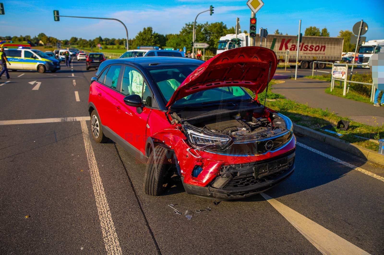 Die Fahrbahn musste für rund 30 Minuten voll gesperrt werden, was zu Verkehrsbehinderungen im Bereich der Kreuzung führte. Über die Höhe des entstandenen Sachschadens lagen zunächst keine Angaben vor.