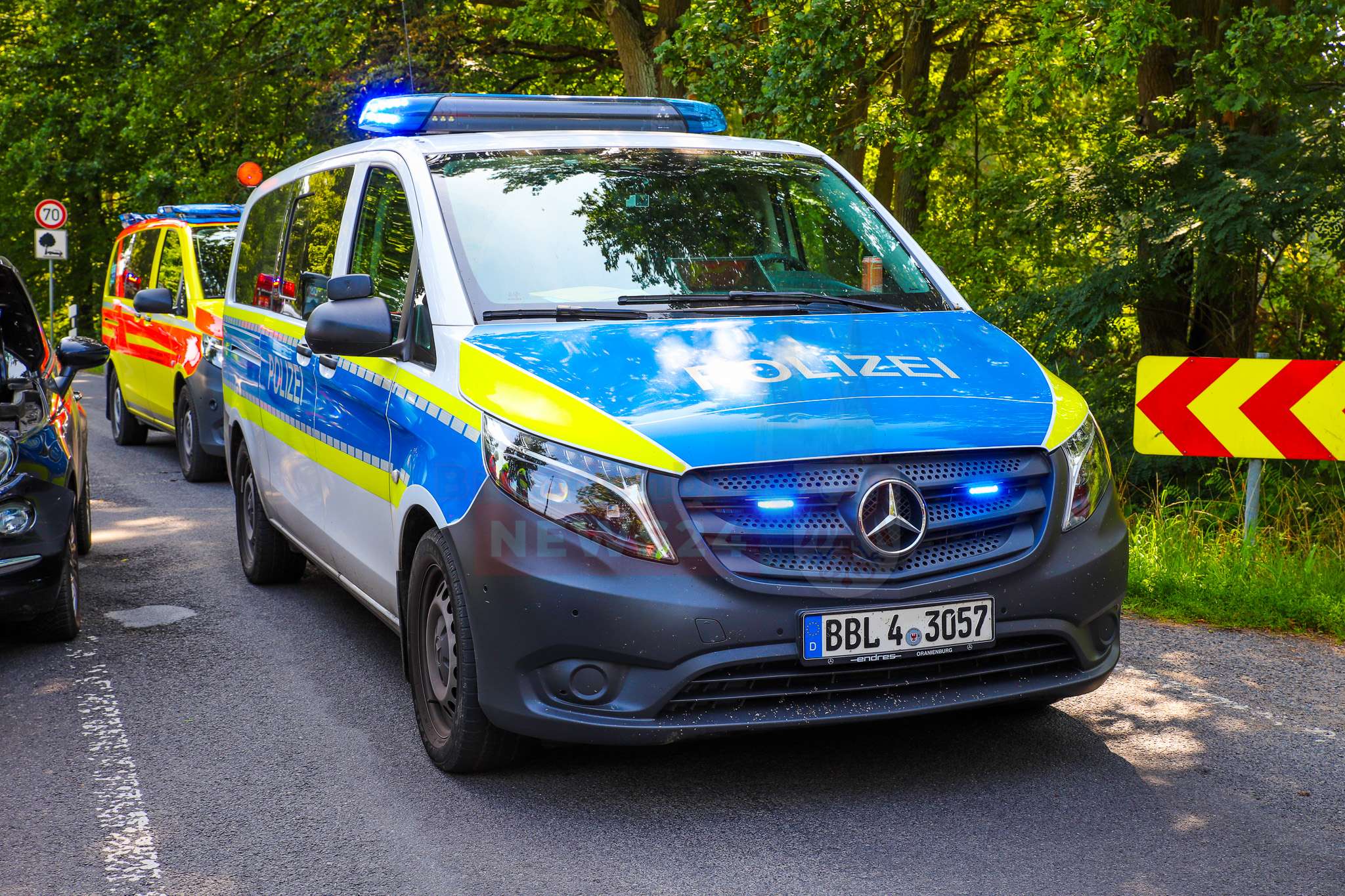 Hohenbruch – Am Samstag, den 9. August 2025, kam es gegen 10:15 Uhr auf der Hohenbrucher Dorfstraße zu einem Verkehrsunfall mit drei beteiligten Fahrzeugen.