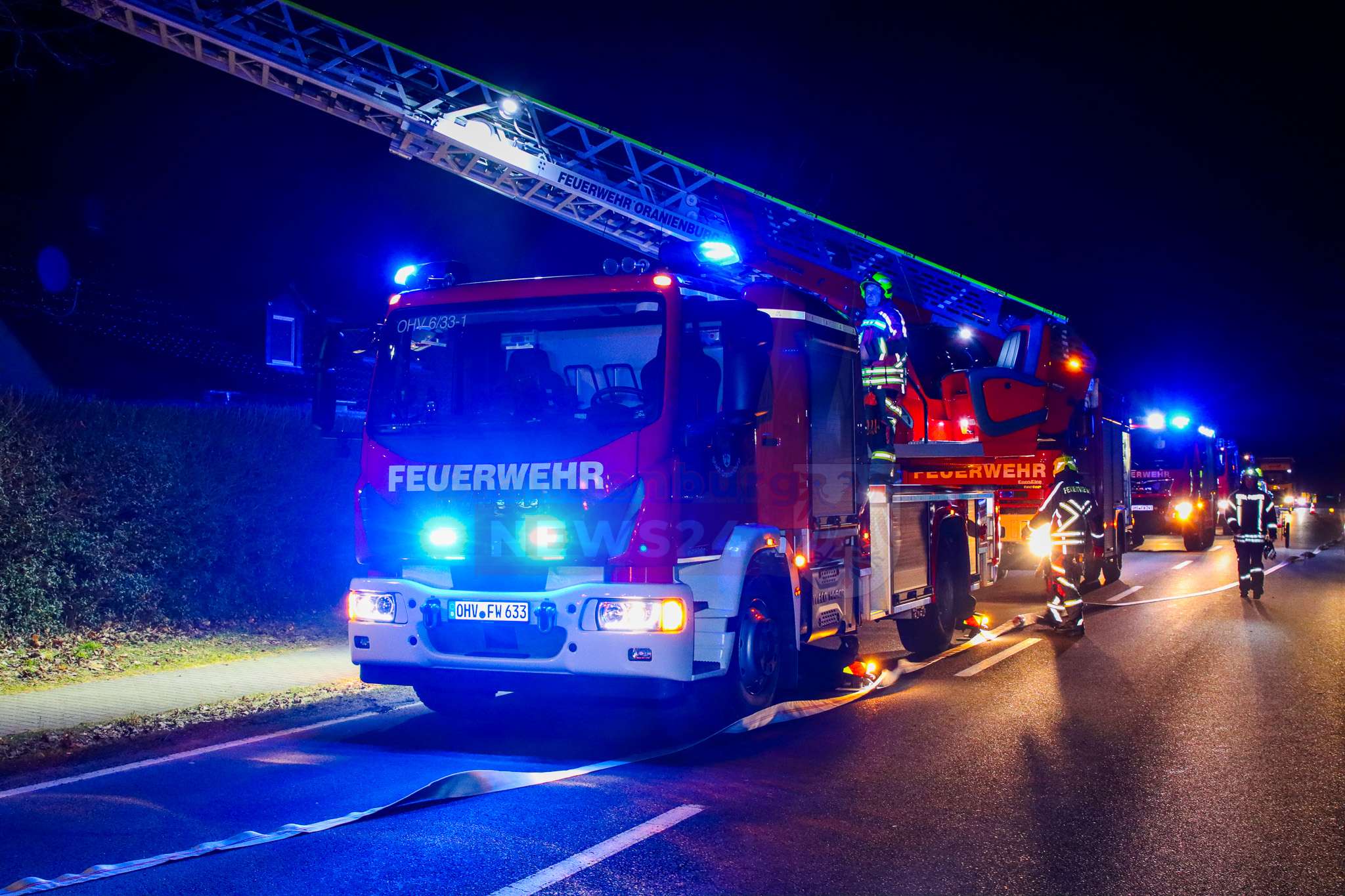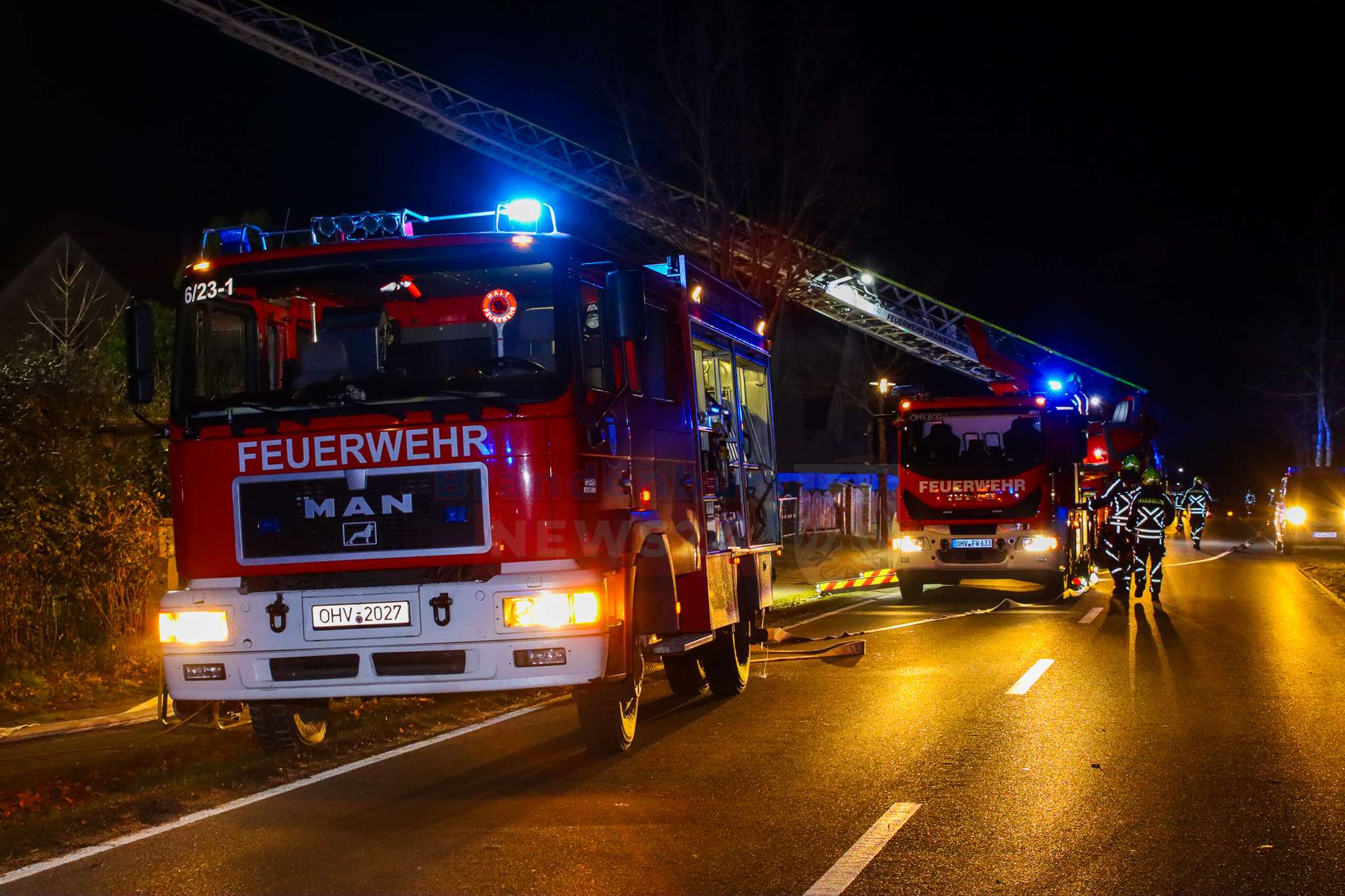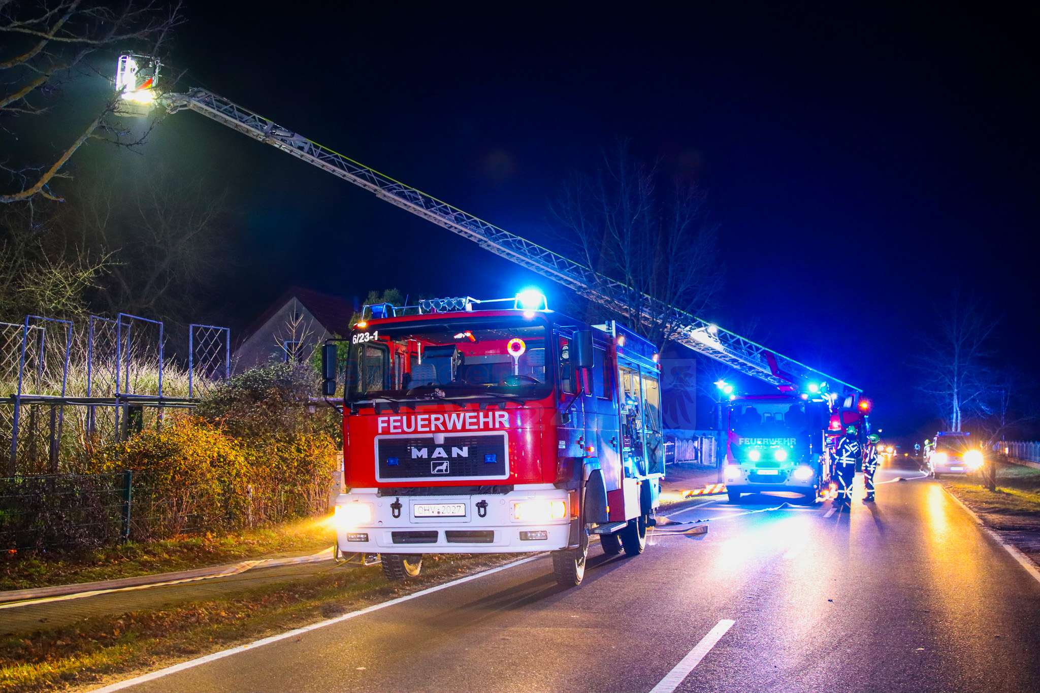 Die Löscharbeiten dauerten bis in die Abendstunden an. Die Kremmener Allee war während der Löscharbeiten voll gesperrt.