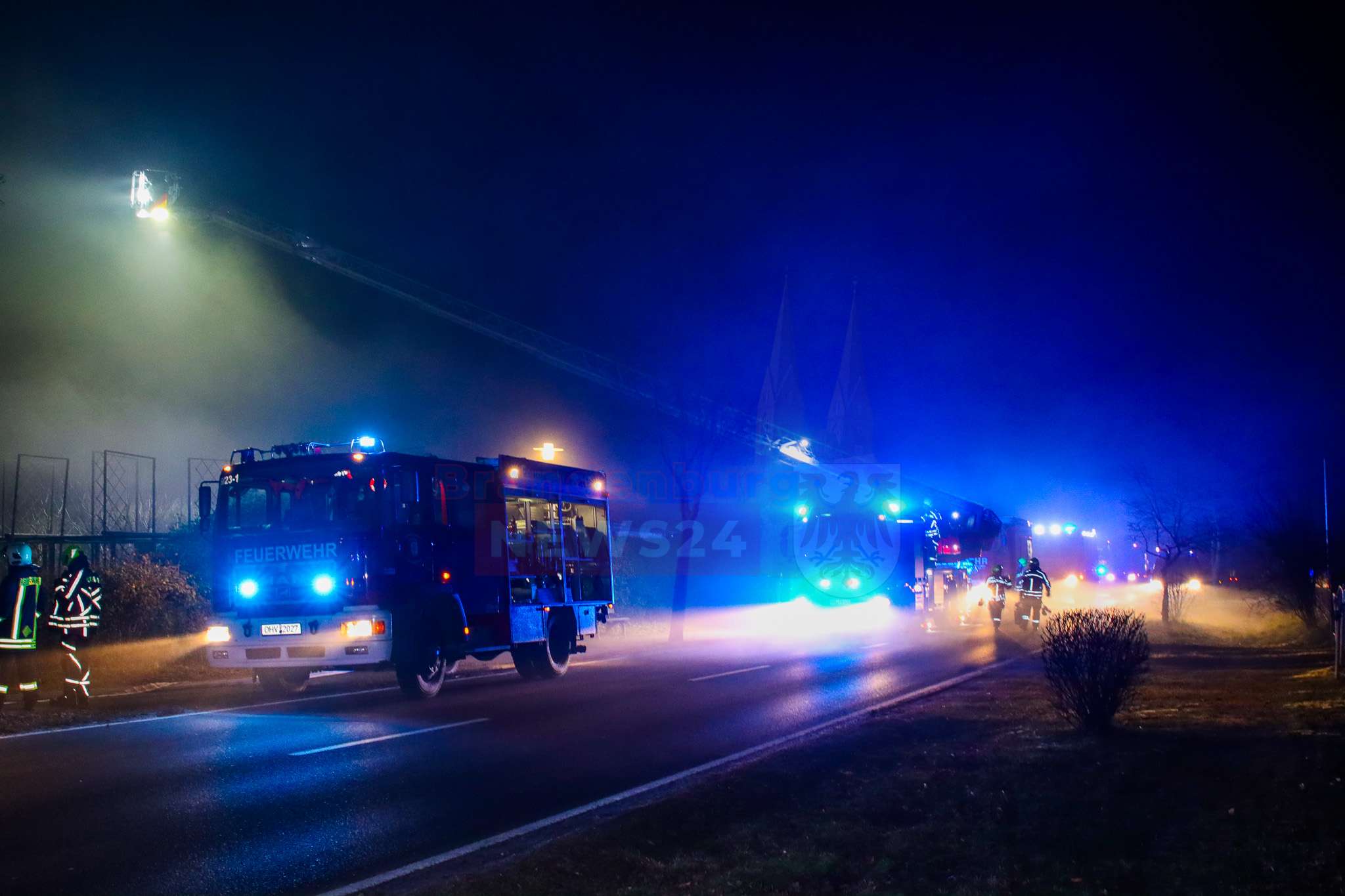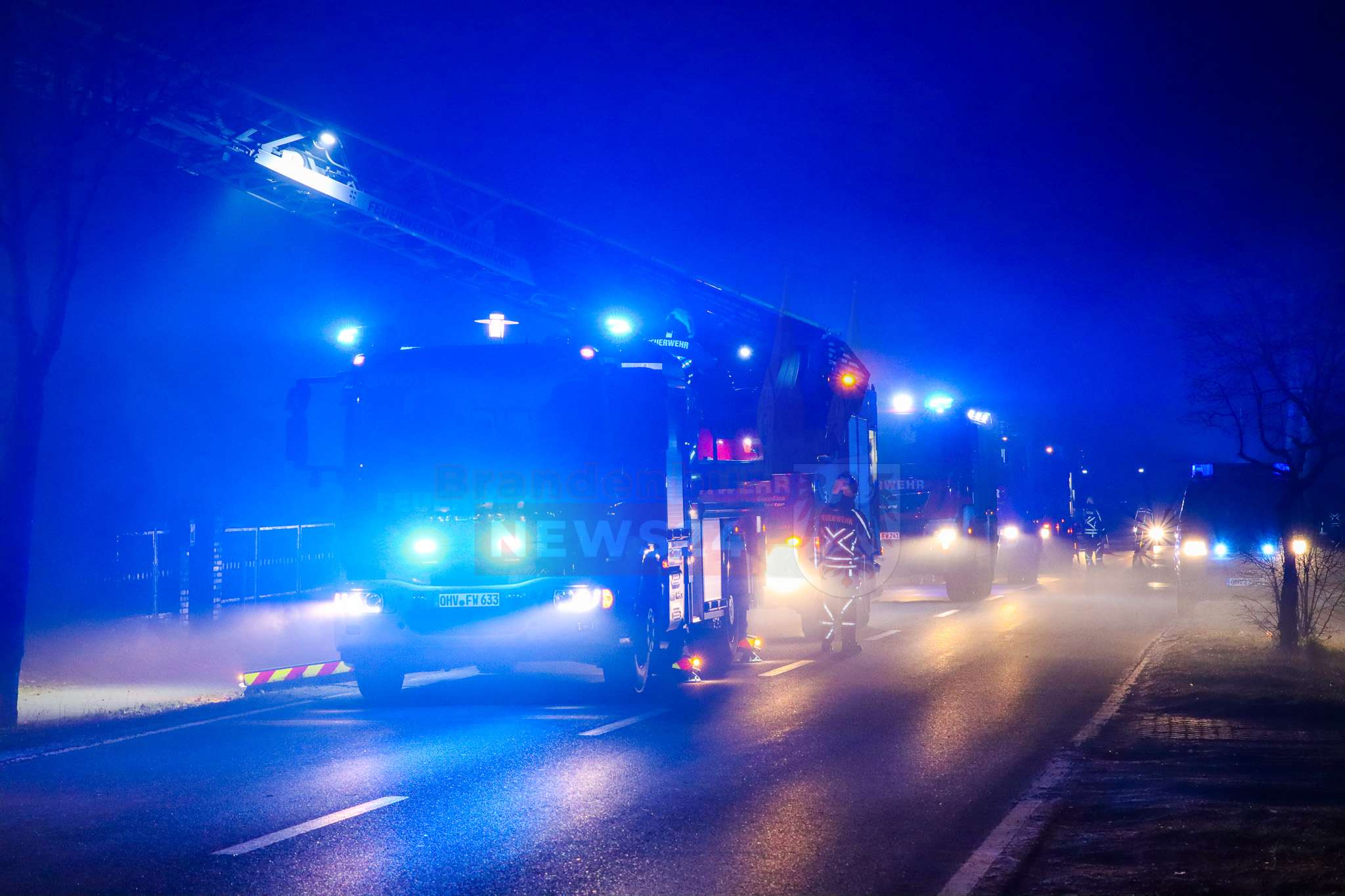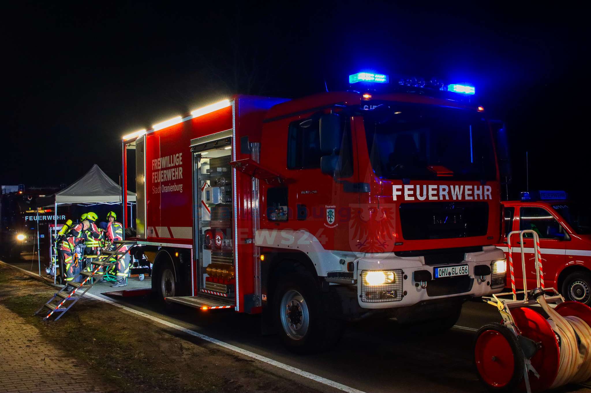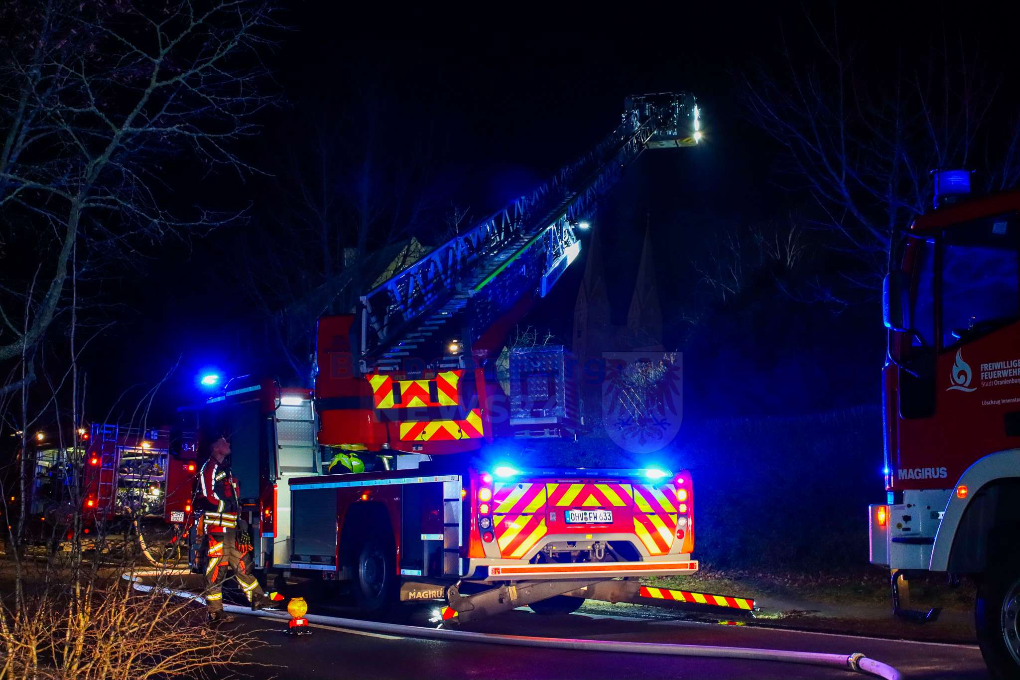 Die Löscharbeiten dauerten bis in die Abendstunden an. Die Kremmener Allee war während der Löscharbeiten voll gesperrt.
