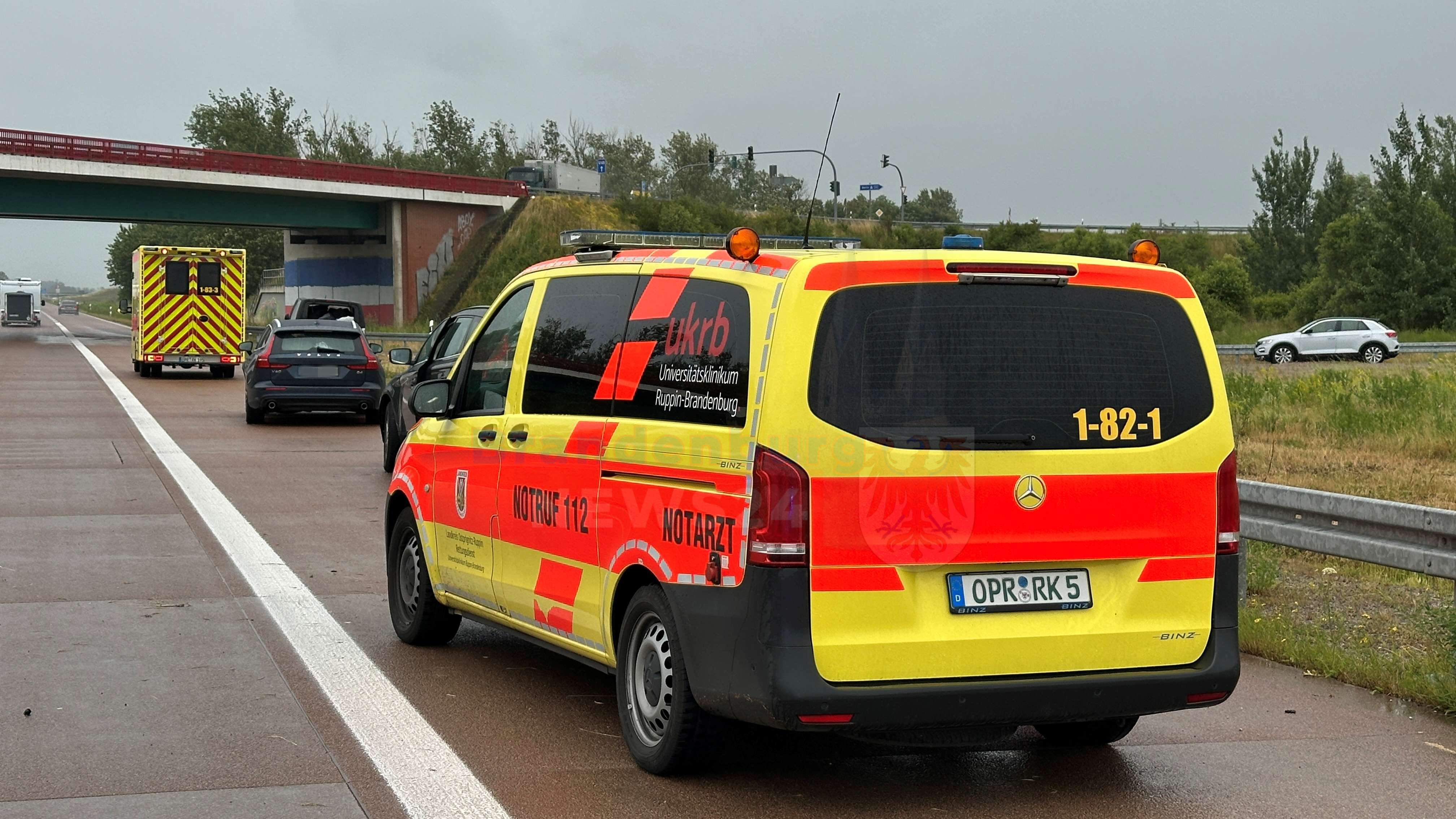 Neuruppin. Am Freitagnachmittag ereignete sich auf der A24 in Fahrtrichtung Berlin zwischen den Abfahrten Neuruppin und Neuruppin Süd ein Auffahrunfall mit drei beteiligten Fahrzeugen. Dabei wurden vier Personen verletzt, darunter ein sechsjähriger Junge. Die Autobahn musste für rund zwei Stunden voll gesperrt werden, was zu kilometerlangen Staus führte.