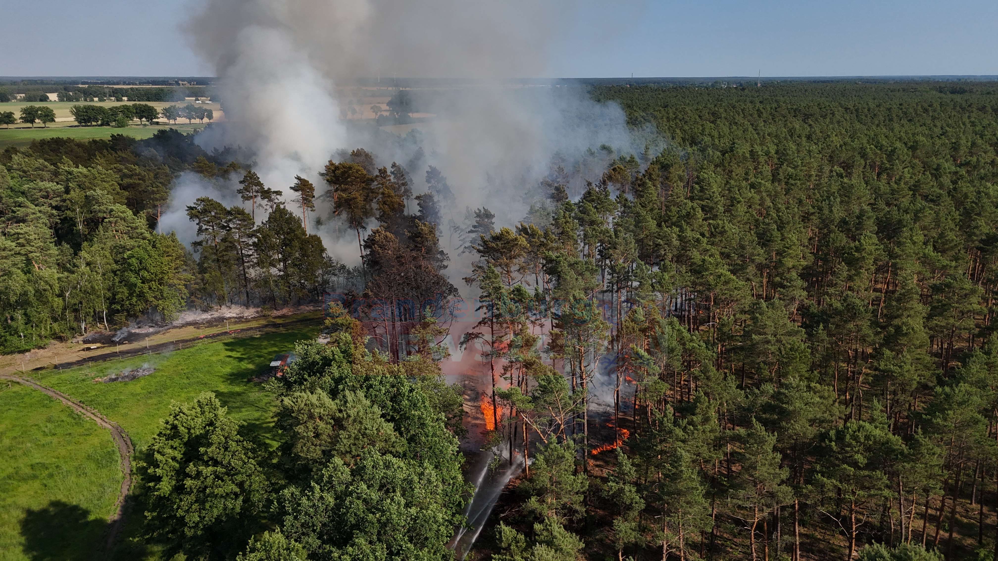 Lindow (Ostprignitz-Ruppin). Ein verheerender Waldbrand hat am Samstagnachmittag, den 21. Juni, bei Lindow einen Großeinsatz der Feuerwehren ausgelöst. Bei brütender Hitze von über 30 Grad kämpften bis zu 150 Einsatzkräfte gegen meterhohe Flammen, die sich durch rund zwei Hektar Wald fraßen. Die Kriminalpolizei hat die Ermittlungen wegen des Verdachts auf Brandstiftung aufgenommen.