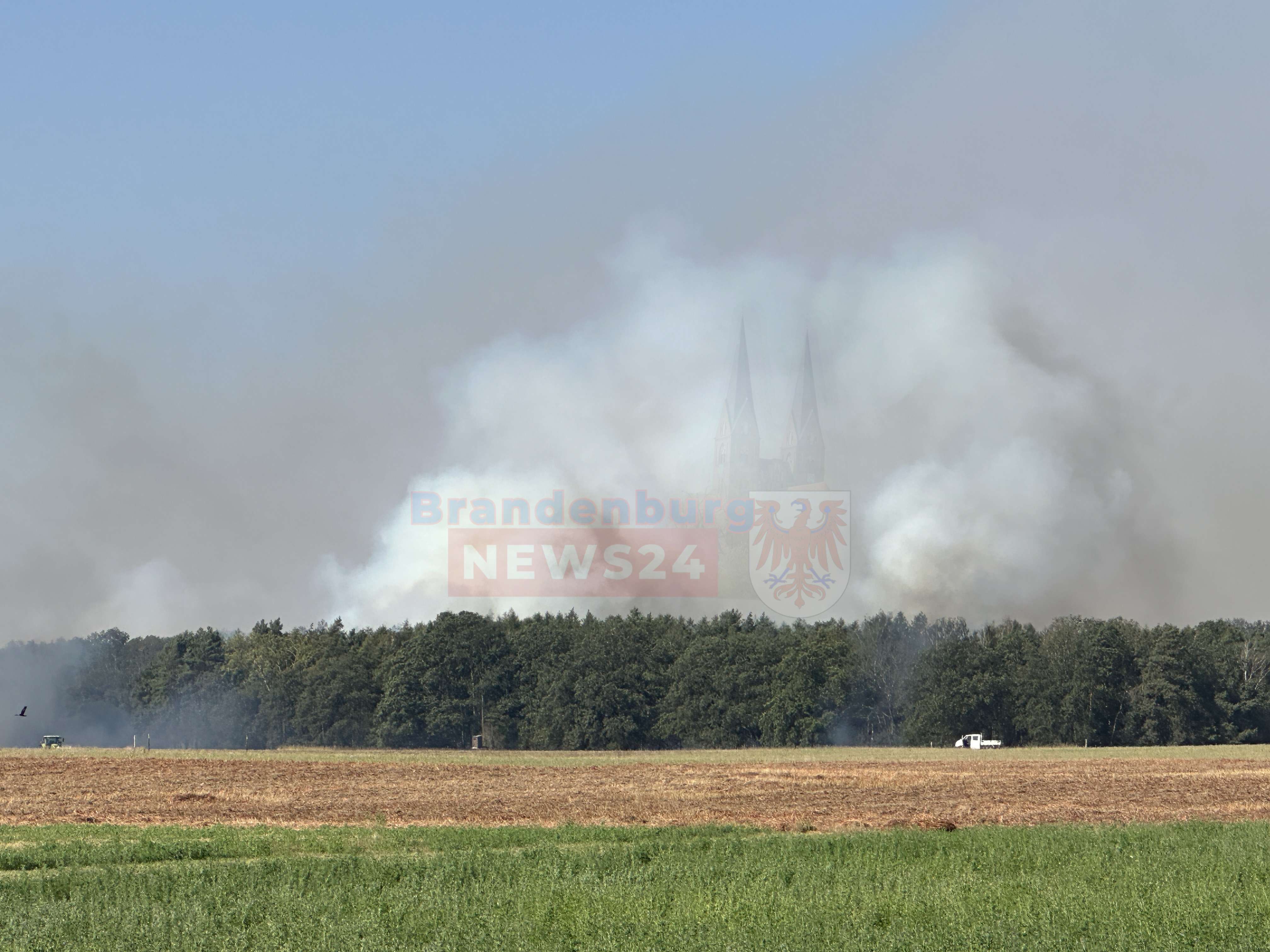 Der Alarm ging um 10:22 Uhr bei der Feuerwehrleitstelle Nordost ein. Kreisbrandmeister Olaf Lehmann bestätigte, dass zunächst eine Fläche von rund 5 Hektar betroffen war. Starke Winde fachten das Feuer aber immer weiter an und ließen die Brandfläche rasch auf 7 Hektar anwachsen.