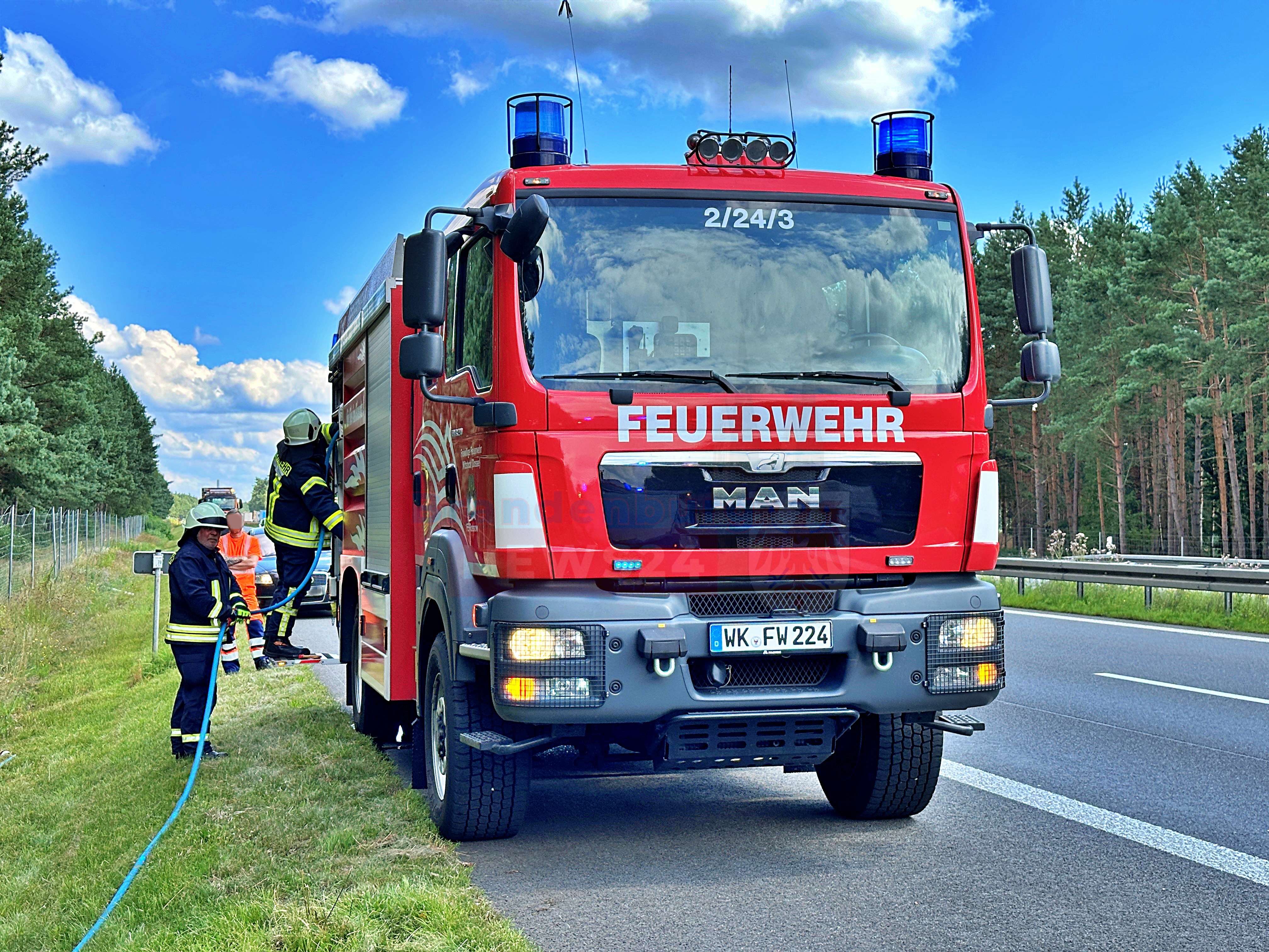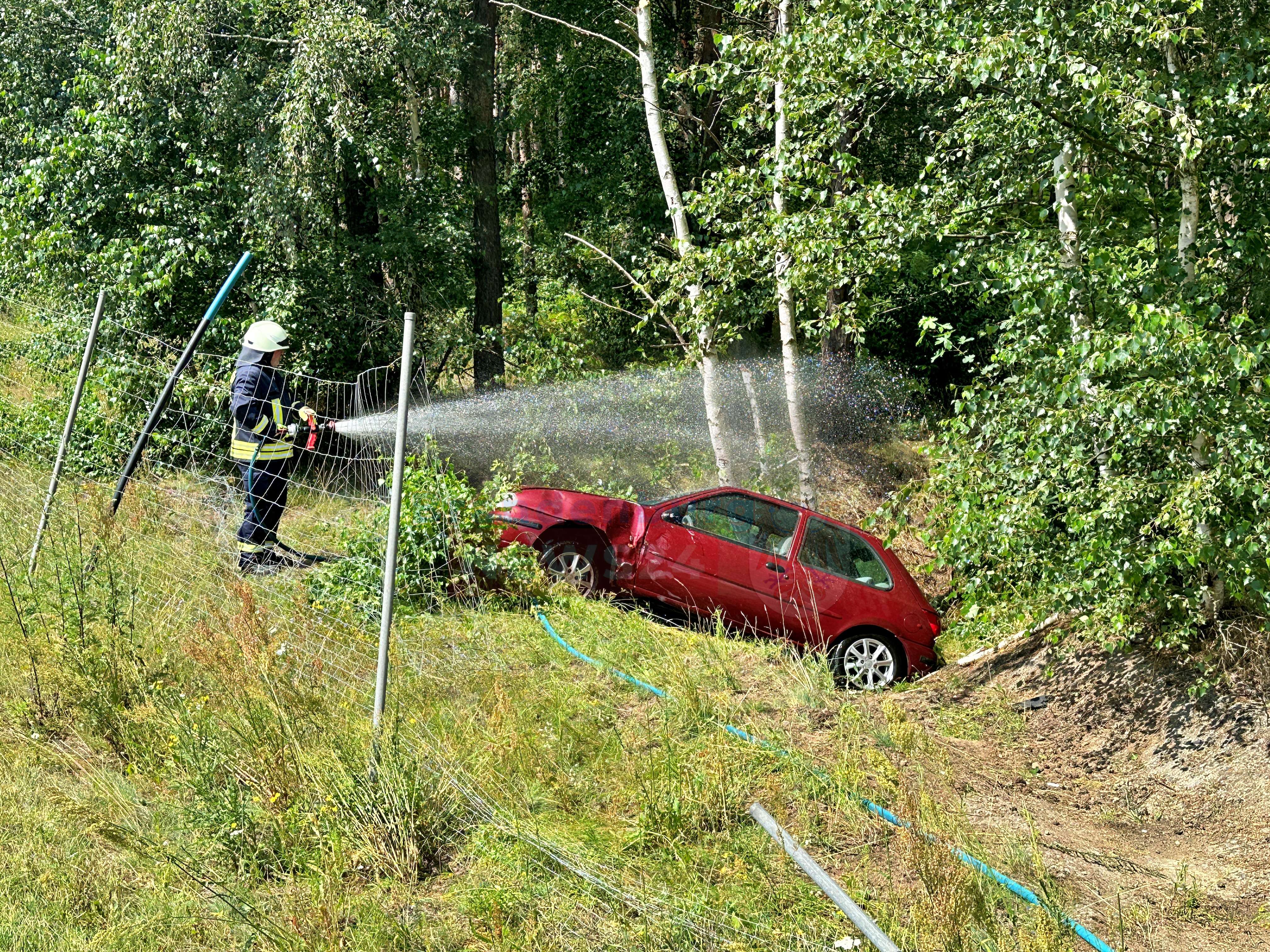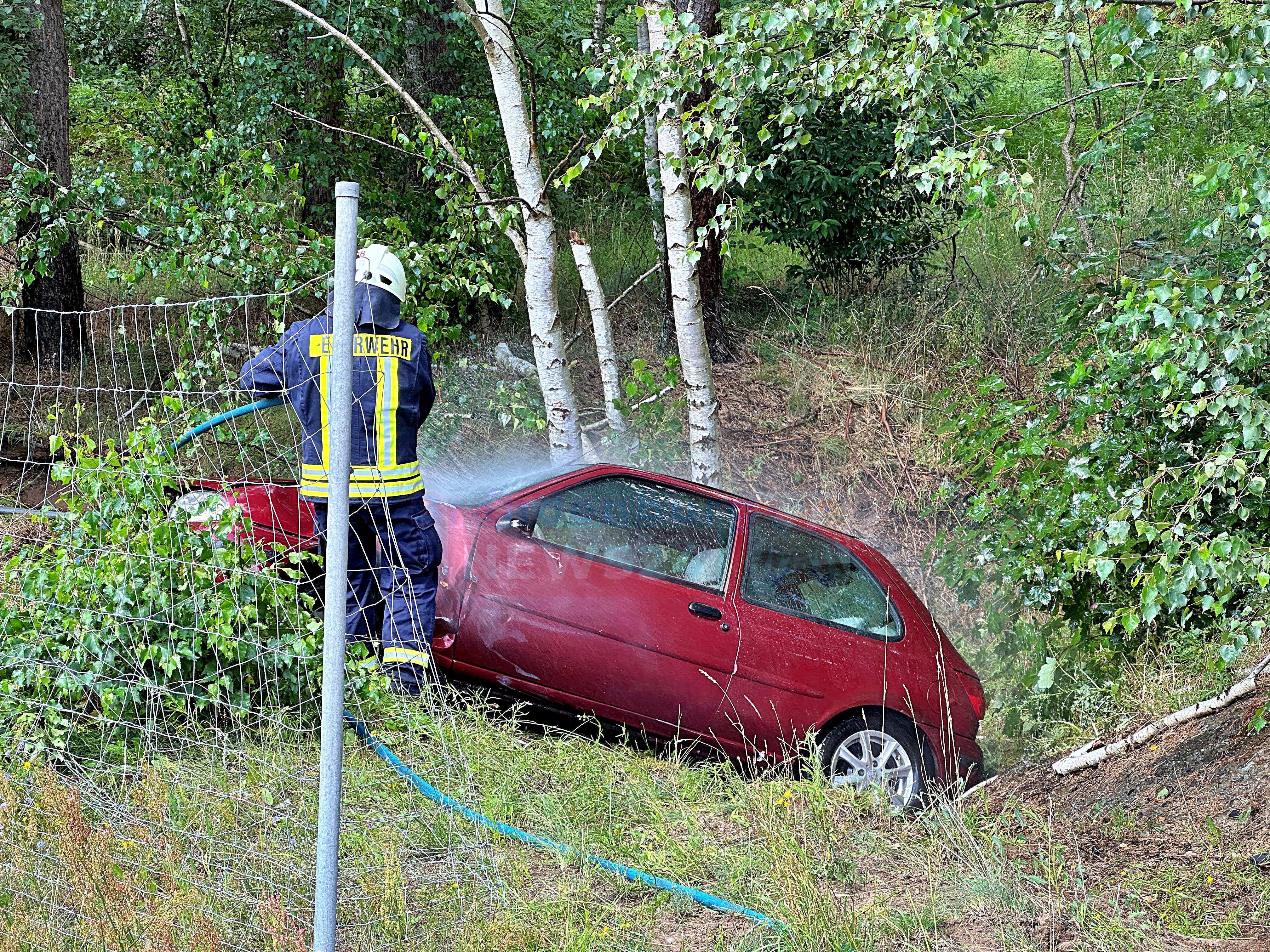 Das Fahrzeug drehte sich und prallte schließlich mit dem Heck gegen eine Birke. Die Feuerwehren aus Rossow und Wittstock/Dosse eilten zum Unfallort und sorgten für den Brandschutz. Um das Fahrzeug zu kühlen und einen möglichen Waldbrand zu verhindern, wurde Löschwasser eingesetzt.