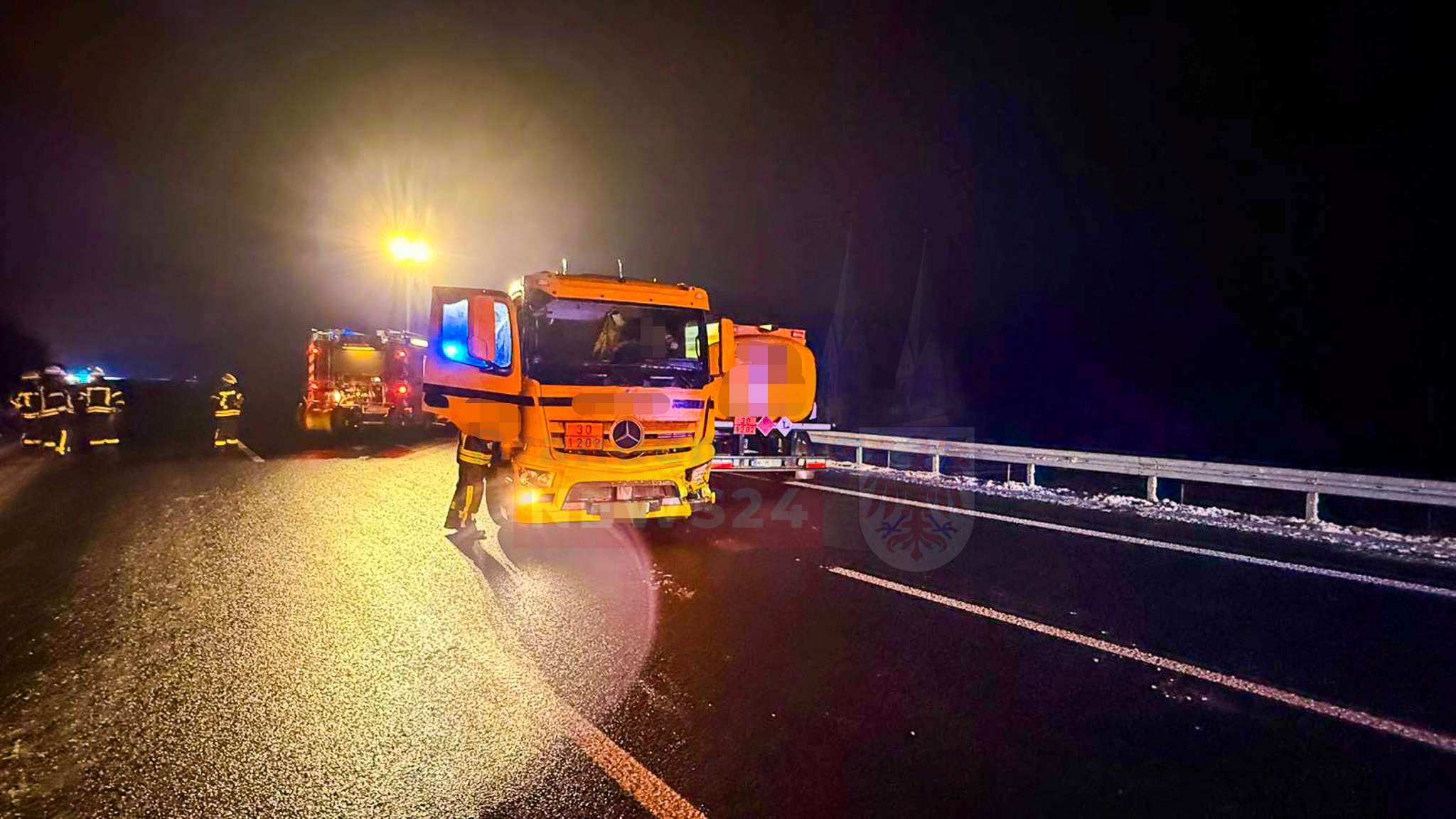 Nach ersten Informationen der Autobahnpolizei kollidierte ein Pkw aufgrund nicht angepasster Geschwindigkeit mit der Mittelschutzplanke. Nahezu zeitgleich kam es auf der Gegenspur zu einem weiteren Unfall, bei dem ein Lkw mit der Leitplanke kollidierte und sich einmal um die eigene Achse drehte. Verletzt wurde bei beiden Unfällen glücklicherweise niemand.