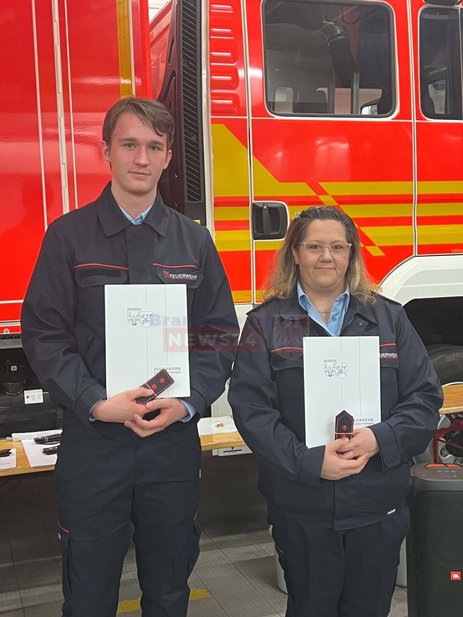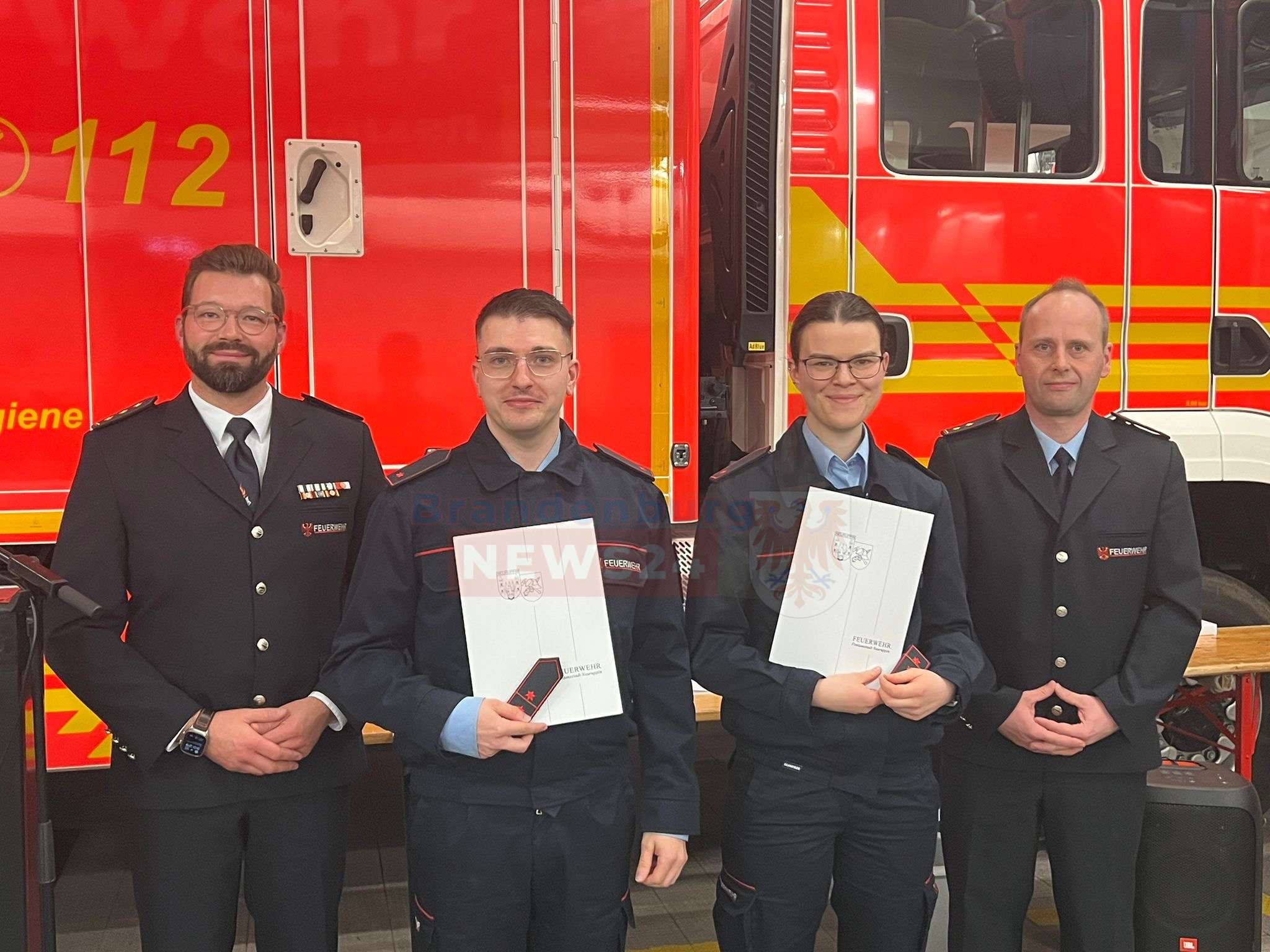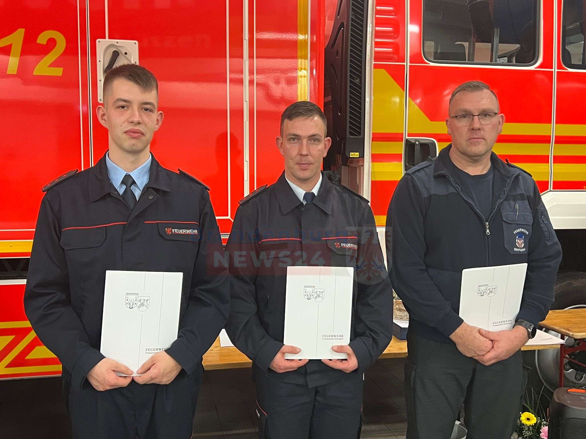 • Acht aktive Kameraden, die für ihre besondere Verlässlichkeit geehrt wurden (Alexander Bergenroth, Bjorn Boldt, Connor Peterson, Patrick Flöter, Nico Bsufka, Lukas Gabel, Luan Ebelt und Maximilian Lange).
