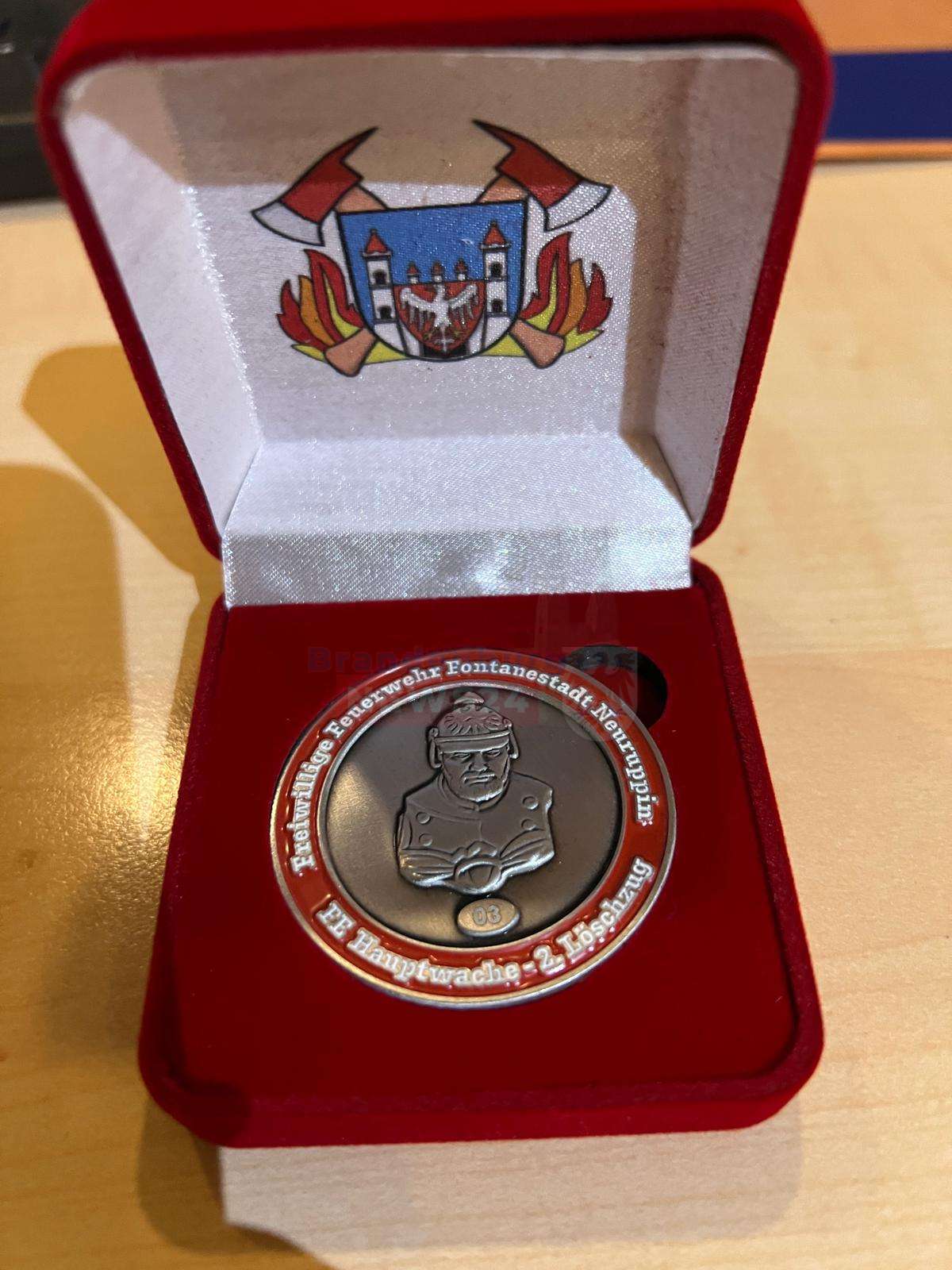 Passend zu diesem Zusammenhalt führte die Zugführung des 2. Löschzuges der Hauptwache vorgetragen von Christian Hohenwald an diesem Abend eine neue Form der Anerkennung ein: den „Ehren-Coin“. Da vieles im Feuerwehralltag leise und ohne große Aufmerksamkeit geschieht, soll diese Münze ein Symbol für Wertschätzung und Verbundenheit sein, sagte Christian Hohenwald. Der Coin kann nicht gekauft oder beantragt werden – er wird überreicht.