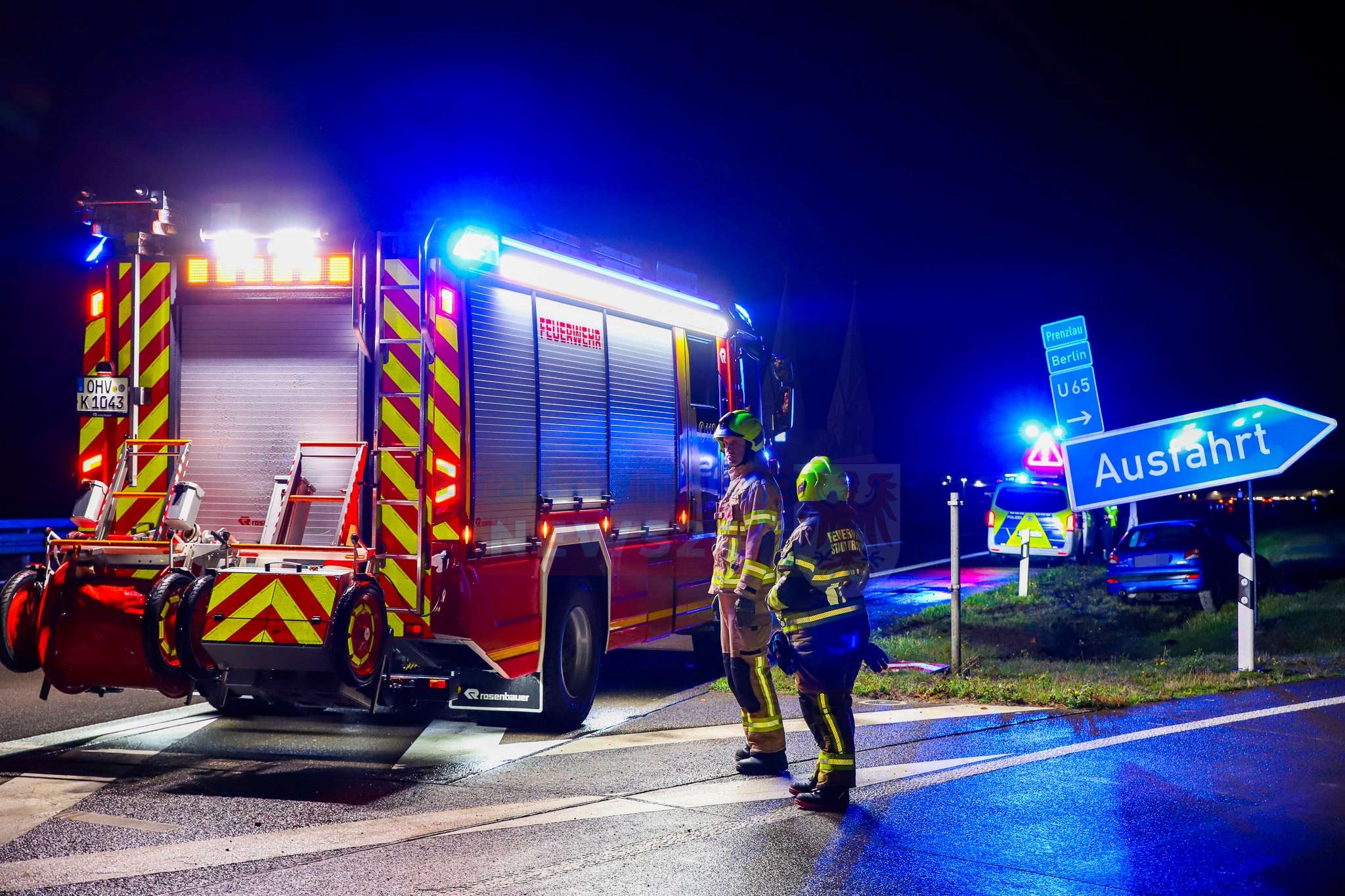 RettungsdienstPolizeiFeuerwehr Fahrer flüchtet nach Unfall an der Anschlussstelle Oberkrämer 02.11.2025 - Oberkrämer. In den frühen Morgenstunden des Sonntags, den 2. November 2025, kam es gegen 0:40 Uhr an der Anschlussstelle Oberkrämer auf der Bundesautobahnen A10 zu einem Verkehrsunfall. Ein Peugeot, der aus Richtung Dreieck Havelland kam, verlor aus bislang ungeklärter Ursache die Kontrolle und kollidierte mit dem Ausfahrtschild der Anschlussstelle.